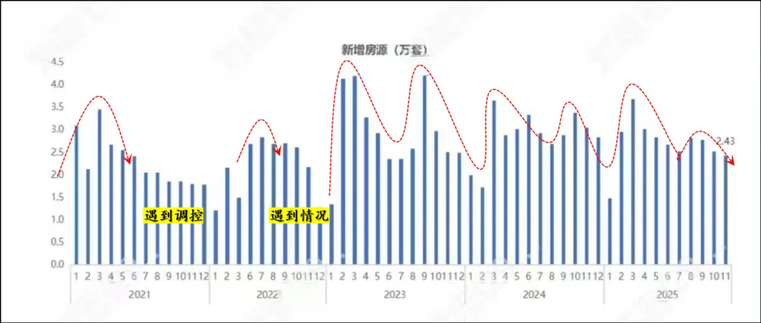 从数据上看,26年从二季度开始,全年会解禁3.3万套,这些解禁新房有可能会成为市场上的挂牌增量