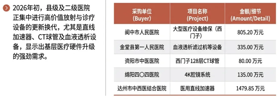 •趋势二:国债资金驱动设备“硬”更新大量医疗设备采购项目明确标注了“超长期特别国债”资金支持,这直接带动了与之配套的软件系统(如PACS、LIS)和维保服务的需求。