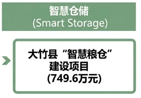 大竹县投入749.6万元建设“智慧粮仓”项目,由中国移动中标。这表明粮食安全的数字化管理(温湿度监控、库存监管等)是县域农业投入的重点。