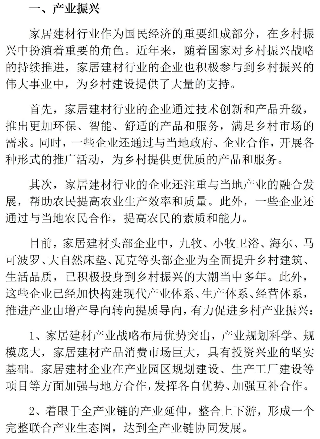 我们首先梳理下2023年度家居建材行业在乡村振兴中的典型事迹: