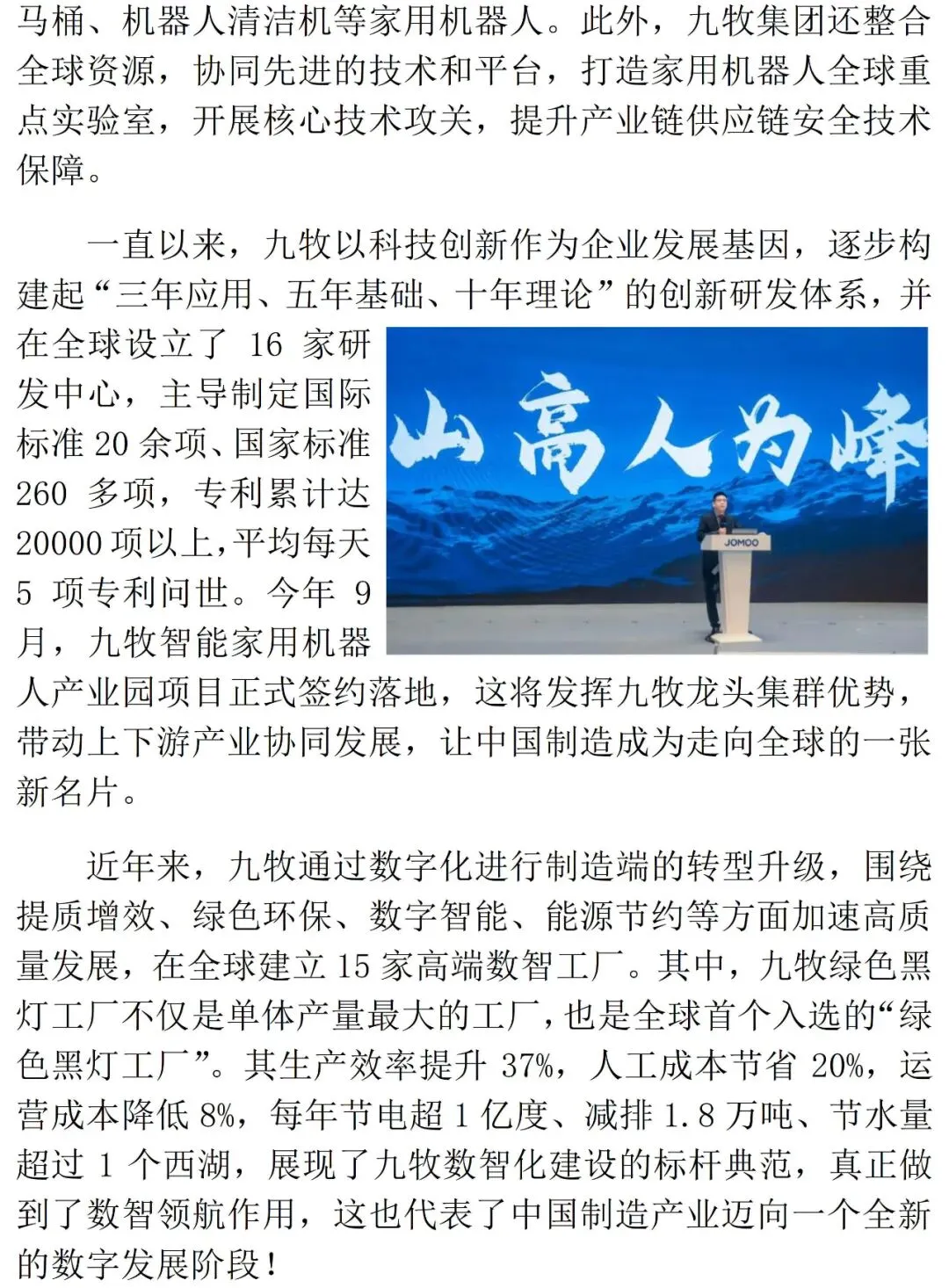 2023年2月,九牧全球供应链发展大会召开。九牧发挥龙头聚集效应,带动上下游产业协同创新发展,创新互惠共赢的合作模式,不仅为企业自身带来巨大变革,大大节省了各项成本和资源,提升了生产效率,为客户创造更好的价值,同时更推动了南安的产业链优化升级,为当地的实体产业发展注入新活力和新动能,打造高质量产业和人居环境,实现企业、上下游供应链、用户与区域经济发展的多方共赢,助力南安朝着高质量经济发展不断迈进。