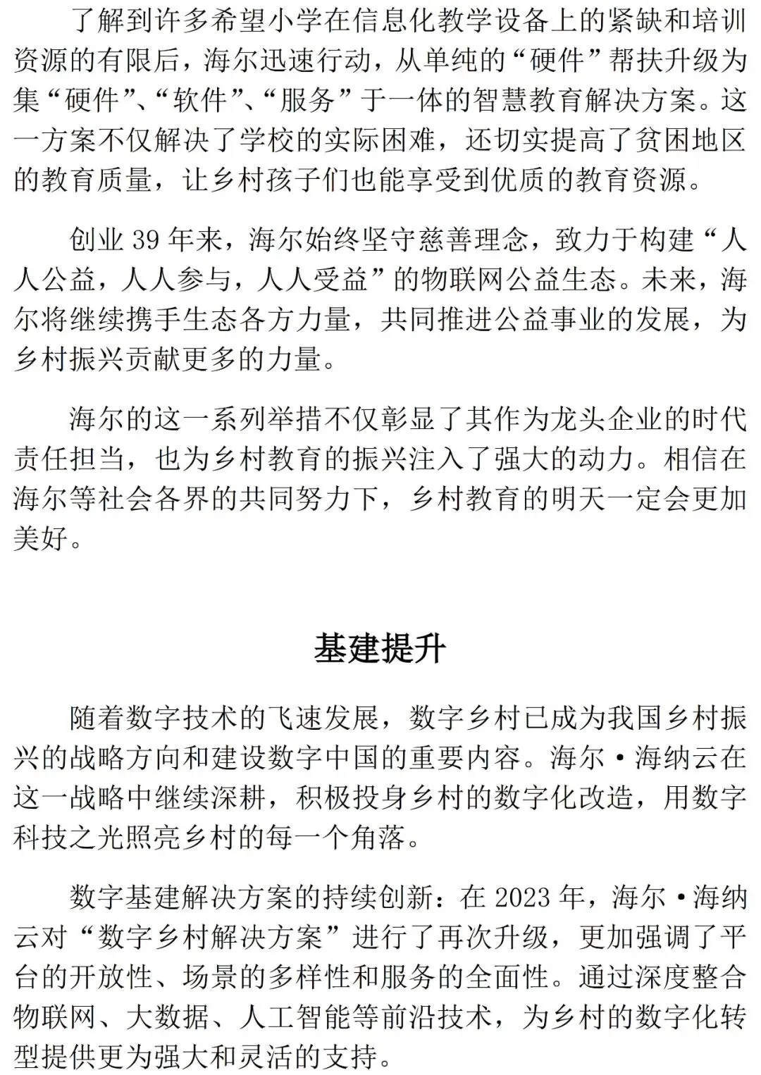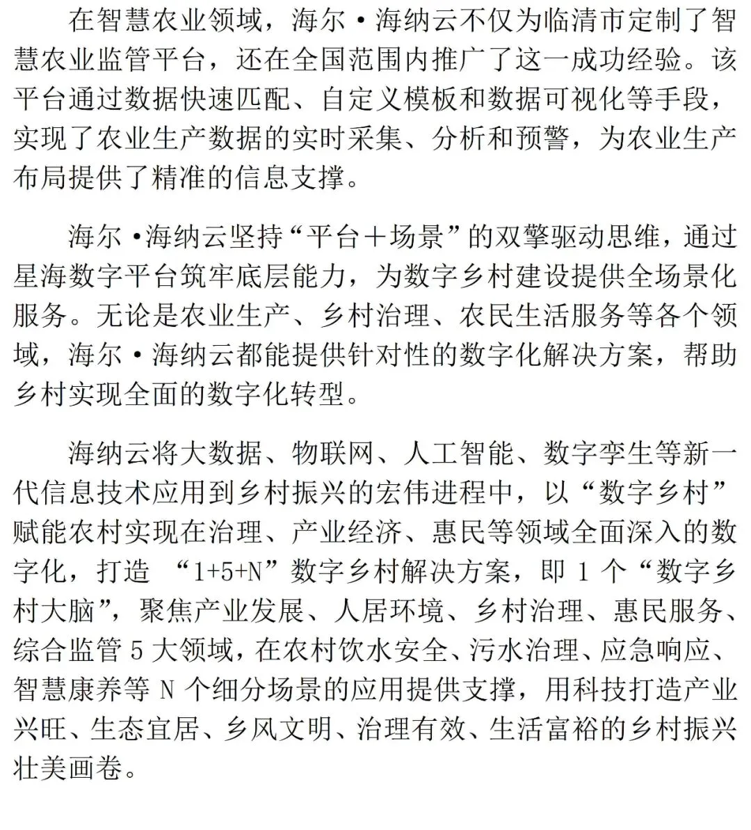 2023年10月,河北任丘:“家电小产业”助力乡村振兴 ,任丘以胡家村作为“淘宝村”试点,通过不断完善电子商务基础设施、组织电商培训、进行产品提质等举措,着力提升乡村数字化水平,助力乡村振兴。目前,该村网店年销售额已达4亿元,带动1200余人就业。