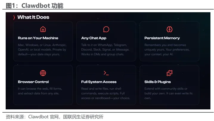2)Clawdbot给出了AI应用商业化明确方向,核心价值在于验证AI从对话工具向执行者转变。我们认为本次产品的热门或验证以Clawdbot为代表的边缘AI产品的前景广阔,并有机会真正加速AI应用的扩散。2026年以来的云厂涨价和H100租赁价格上涨或暗示众多企业都在建设内部Agent生态,我们认为从对AI产业锚点的价值看,产业趋势的确认或许比一个热门单品的观察更重要。