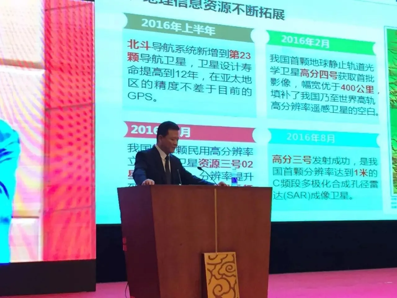 以下文字记录摘自宋超智在大会现场的PPT及演讲内容(未经本人核实):宋超智:2016年,是建成小康社会决胜阶段的开局之年,是推进结构性改革的攻坚之年。同时也是国家测绘地理信息局成立60周年,更是行业产业转型发展的关键之年。