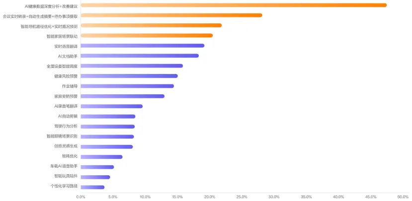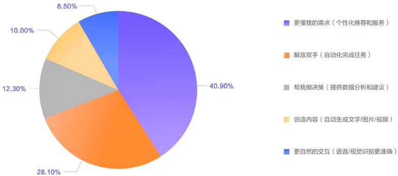 那么用户最看重什么?报告揭示了清晰的优先级:个性化服务位居首位,远超其他价值点。用户对AI的核心期待并非算法本身的先进性,而是设备能否理解其使用习惯与长期需求。