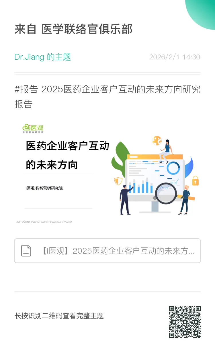 获取更多行业报告?、白皮书?、投资报告?、市场洞察?、趋势报告?、蓝皮书?,请添加小编微信号?MedicalLiasion