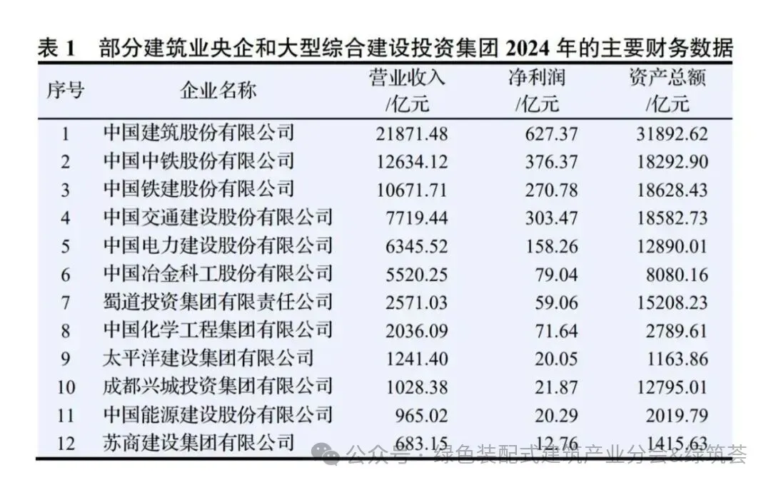 (1)建筑业央企和一些大型综合建设投资集团不纳入榜单范围。为了反映这些企业在建筑业企业中的地位和影响力,表1列出了这些企业在年报或可信渠道公开披露的主要财务数据。