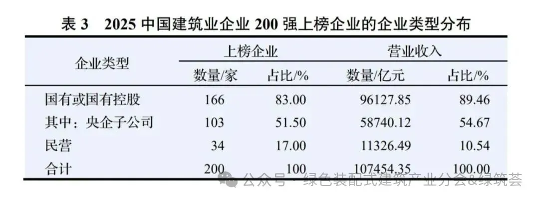 2025中国建筑业企业200强上榜企业的企业类型分布如表3所示。