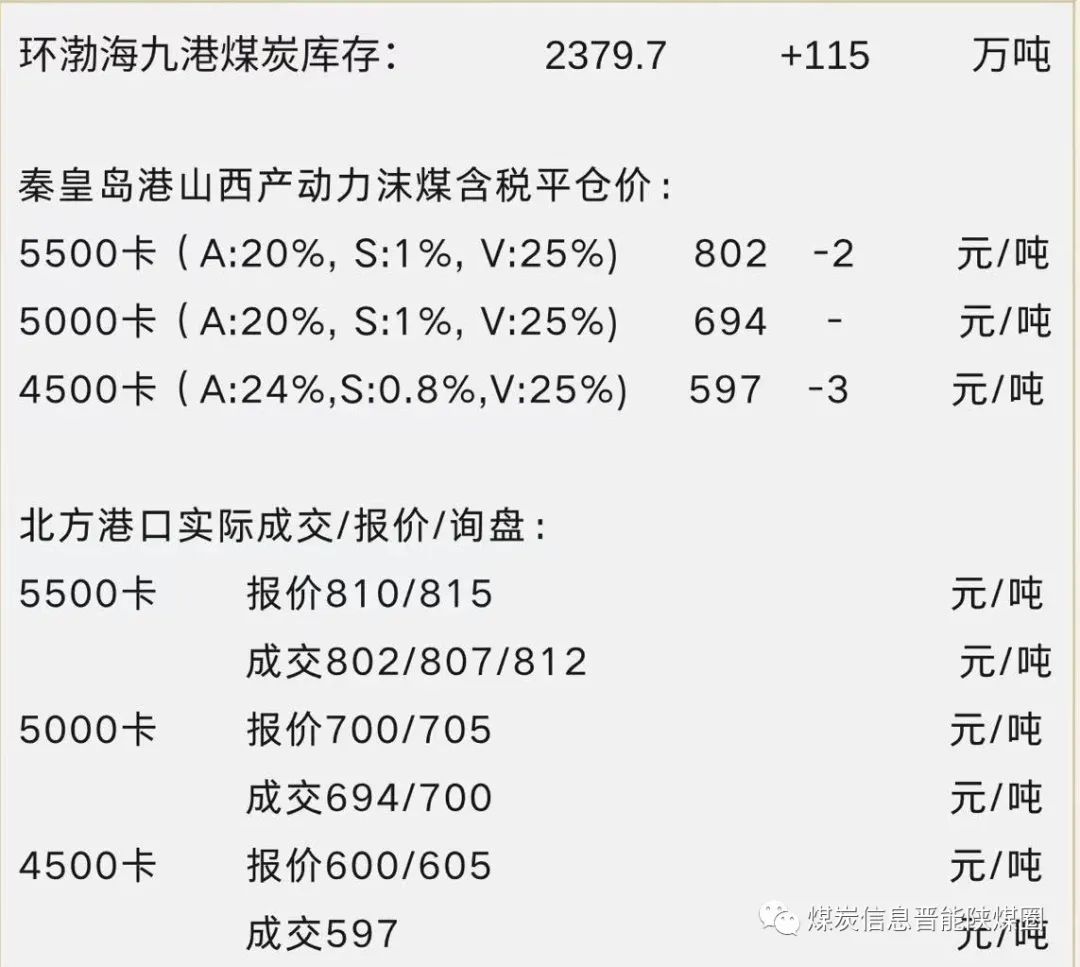 北方港煤炭价格汇总