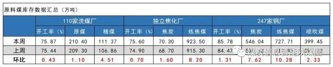 原料煤库存情况变化