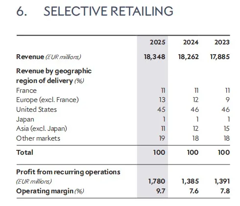 尽管核心财务指标出现下滑,但财报中仍透露出积极信号:经营性自由现金流增长8%至113.3亿欧元,精选零售部门经常性营业利润大幅上升28%。