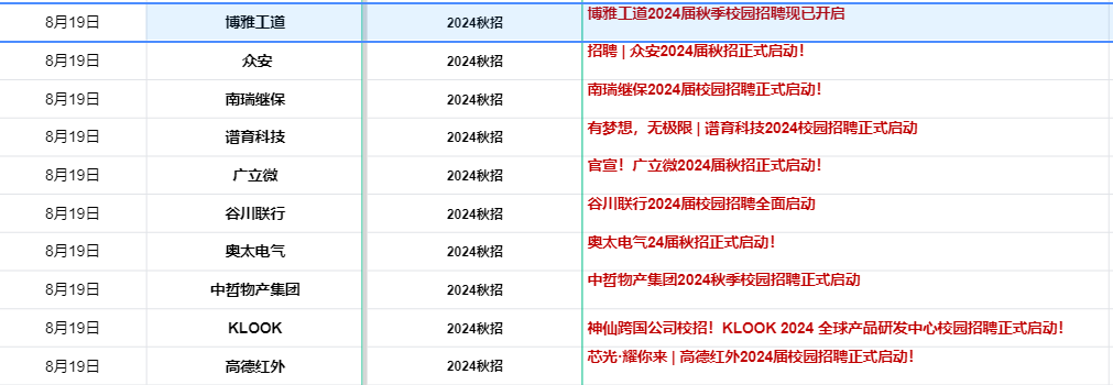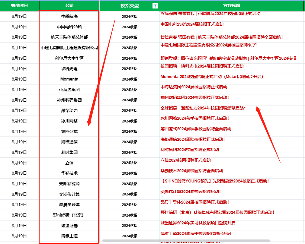 截止目前:已有546家企业正式发布秋招公告,部分网申将于8月31日截止。