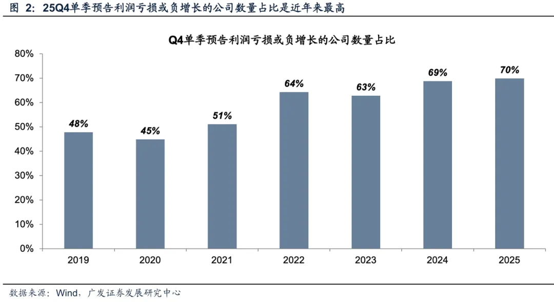 视角②:Q4单季利润亏损或负增长的公司数量占比为70%,同样为近年来新高。