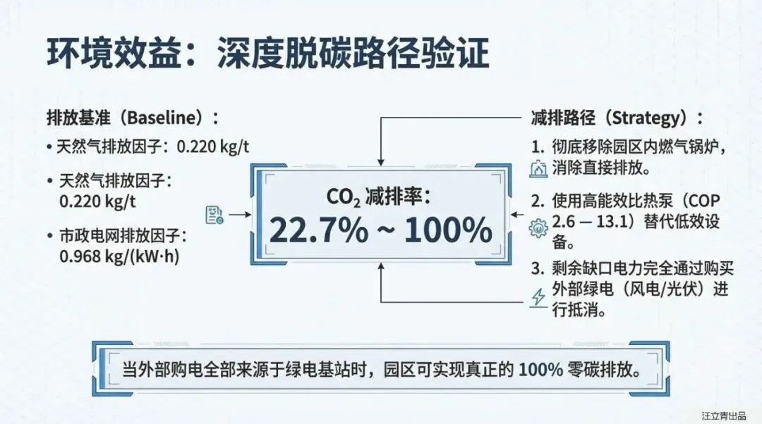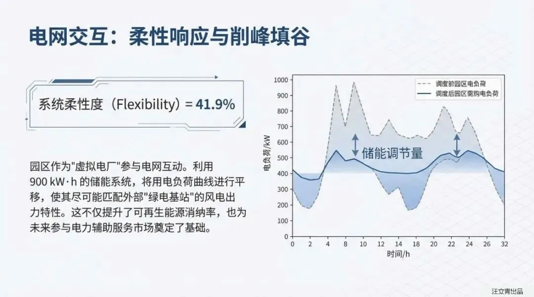真正的零碳不仅仅是减排,更是系统“柔性”的博弈。 报告引入了“柔性度”这一关键指标,评估系统应对源荷不确定性的能力,最终该园区系统的柔性度达到41.9%,意味着其拥有强大的削峰填谷与自我调节能力。在减排效果上,数据更是直观:如果园区外购电力全部来自绿电基地的风光电,二氧化碳减排率与一次能源节约率均可达到100%;即便完全依赖现有市电网补充,依靠系统自身的高效能,也能实现22.7%的碳减排和33.0%的能源节约,。对于着眼长远运营的园区开发者而言,这份报告提供了一套兼顾能源、环境、经济与灵活性的最优解。