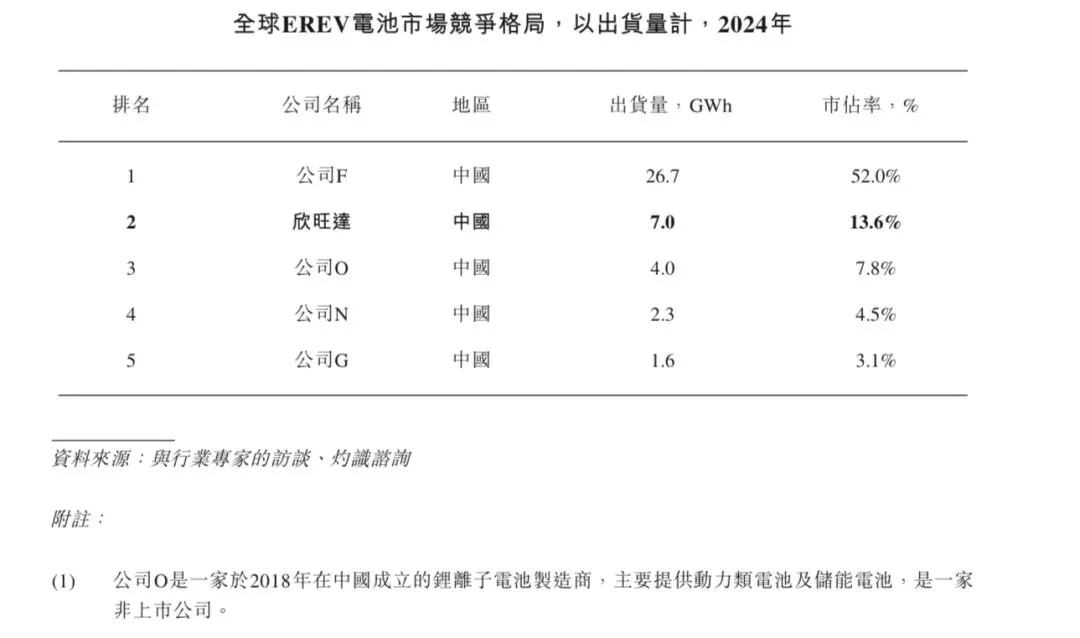 EREV电池领域基本由中国厂商主导,是由于国内对 EREV 的需求强劲、电池供应链高度整合以及国家推出新能源汽车扶持政策。按2024年出货量计,欣旺达是全球第二大EREV电池厂商,市占率为13.6%。