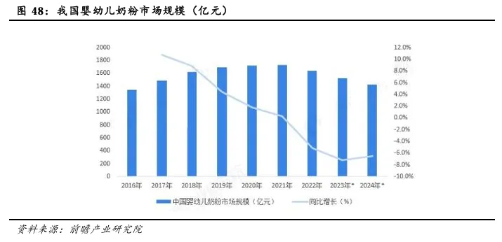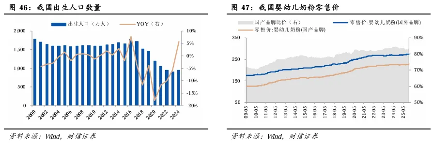 2025年, 中共中央办公厅、国务院办公厅印发了《育儿补贴制度实施方案》。从 2025 年1月1日起,对符合法律法规规定生育的3周岁以下婴幼儿发放补贴,至其年满3周岁。育儿补贴按年发放,现阶段国家基础标准为每孩每年3600元。育儿补贴制度为我国一项长期支持和激励生育的制度。该政策通过降低育儿成本,可部分扭转“生育意愿低迷”的趋势,有望从中长期刺激和提升我国的生育率,从而提升婴配粉市场规模。