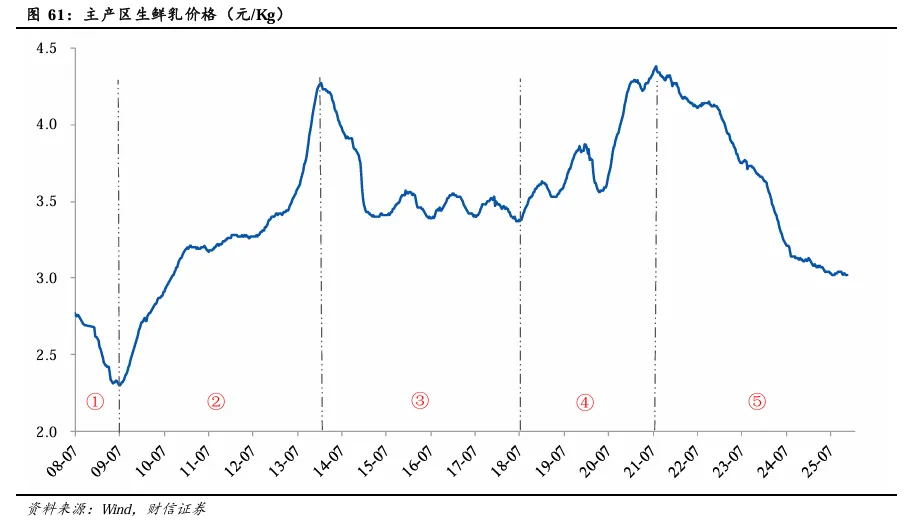 第一阶段(2008Q3-2009Q3):生鲜乳价格波动幅度为-17%(2.77至2.30元/Kg)。主要受国内三聚氰胺事件影响,引发国产牛奶信任危机,消费者信心受挫,需求端出现显著下滑。