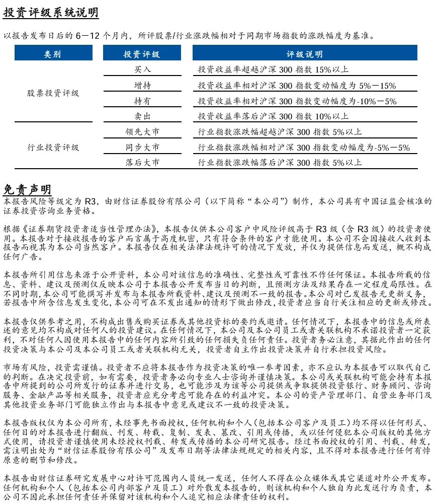 本订阅号不是财信证券研究报告的发布平台,所载内容均来自财信证券已正式发布的研究报告或对报告进行的跟踪与解读,订阅者若使用所载资料,有可能会因缺乏对完整报告的了解而对其中关键假设、评级、目标价等内容产生误解。提请订阅者参阅财信证券已发布的完整证券研究报告,仔细阅读其所附各项声明、信息披露事项及风险提示,关注相关的分析、预测能够成立的关键假设条件,关注投资评级和证券目标价格的预测时间周期,并准确理解投资评级的含义。