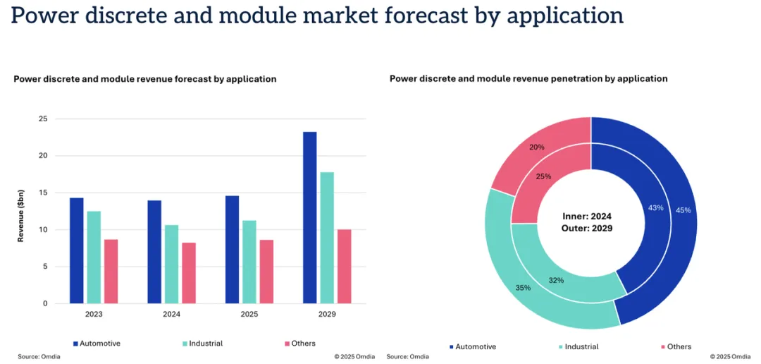 从应用角度看,汽车和工业仍是功率器件的核心市场,汽车电动化程度提高以及工业自动化持续推进,这两大领域的营收占比预计将进一步提升。