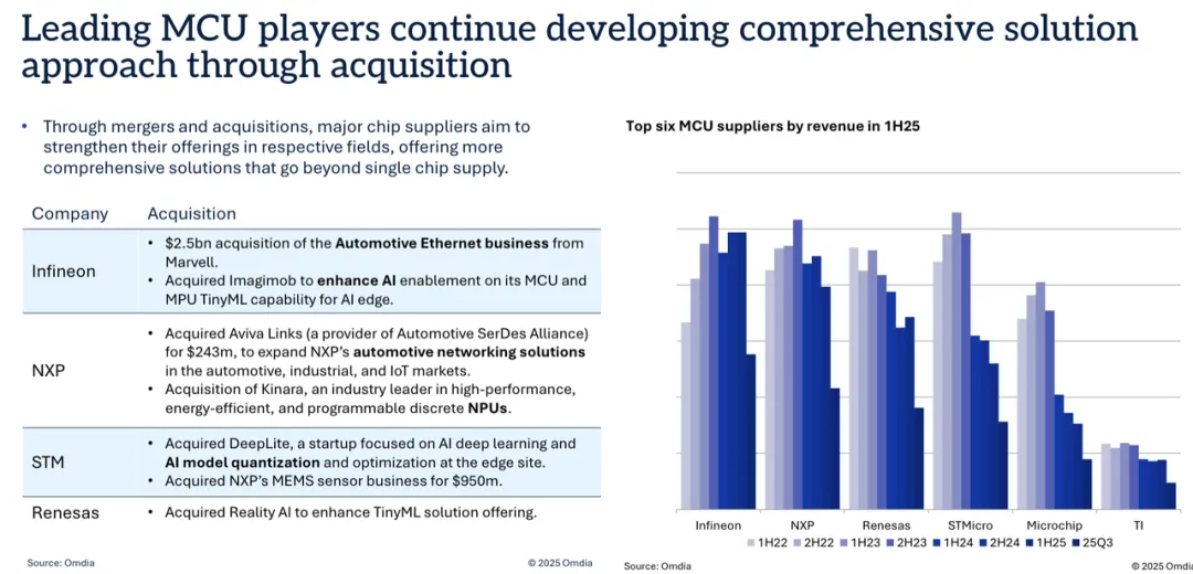 头部 MCU 厂商通过并购强化解决方案能力,超越单一芯片供应。