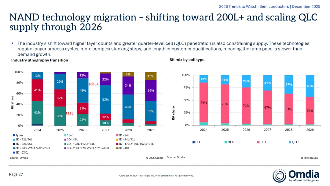 4.2 存储市场:DRAM与NAND双轨发展- DRAM/HBM:受AI推理与上下文窗口扩大推动,HBM成为核心瓶颈,供给持续紧张;- NAND:2024年反弹后,2026年价格预计继续上涨,同时行业向200层以上与QLC技术迁移;- SSD与HDD:AI带来近线存储需求激增,但HDD凭借成本与容量优势,在未来十年仍不可替代;