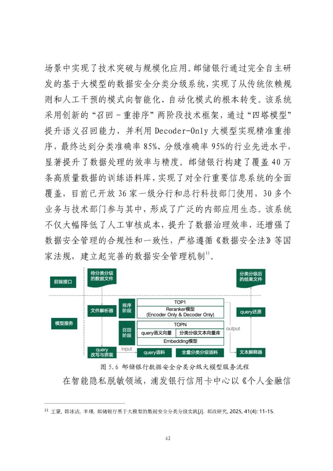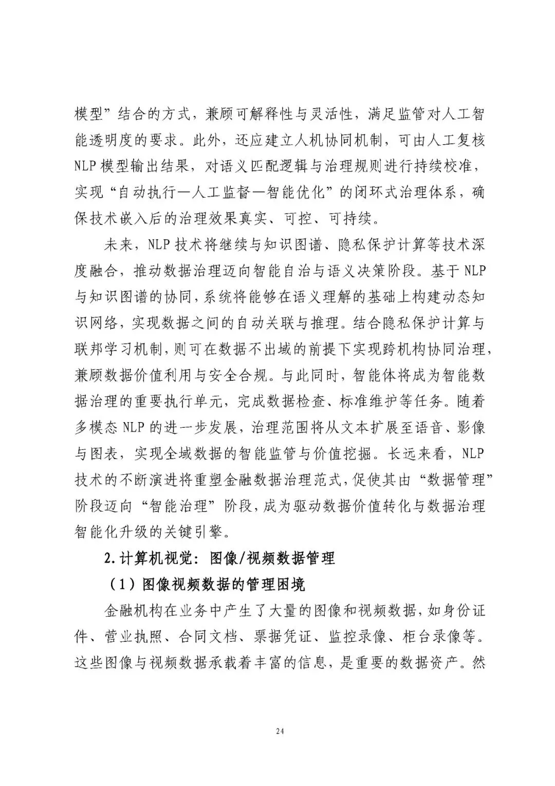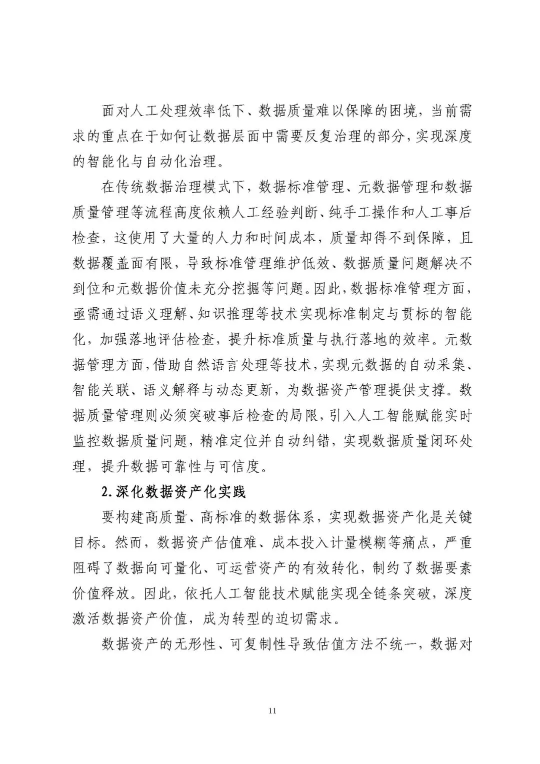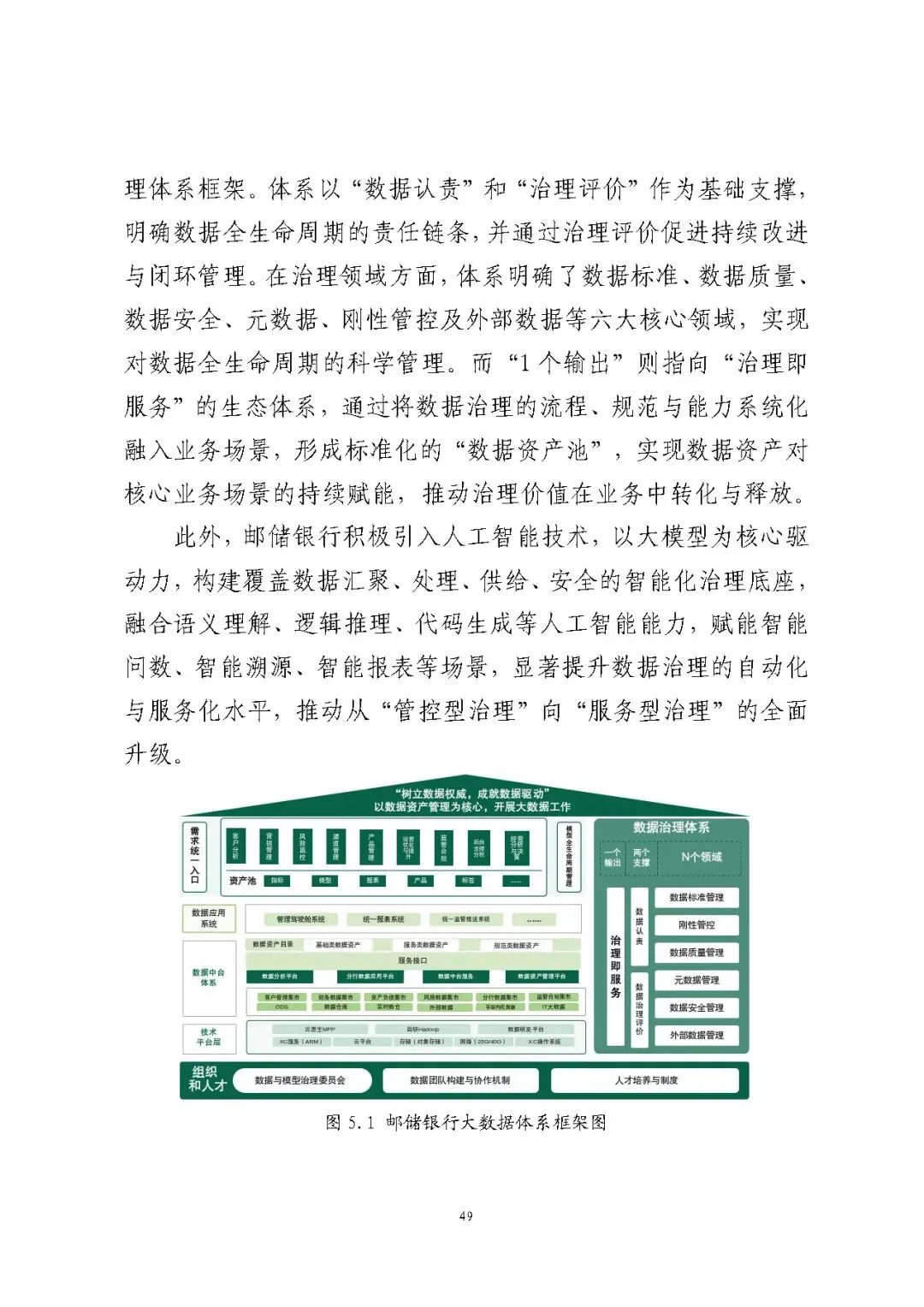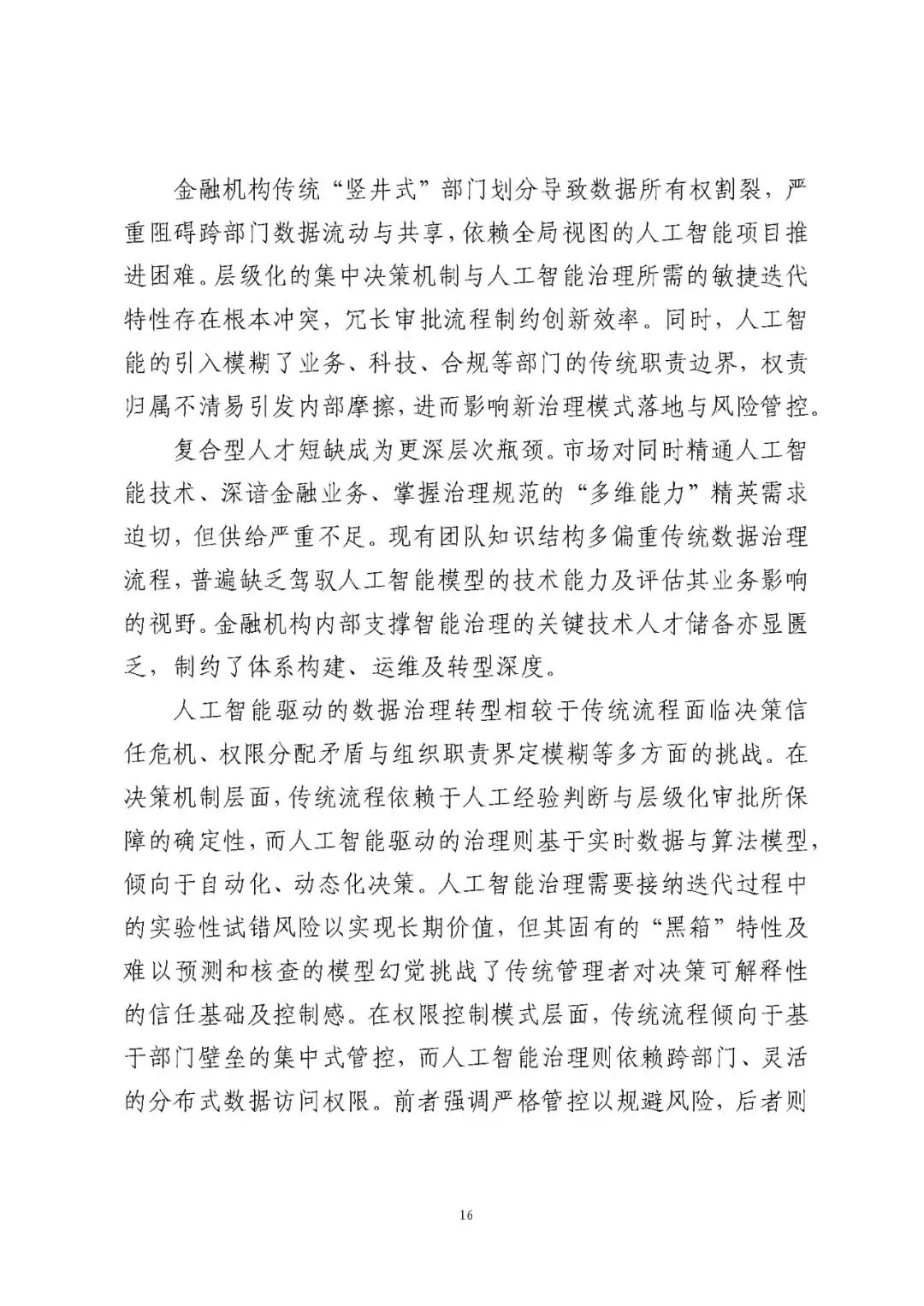 本报告提出了人工智能驱动数据治理的行业解决方案,聚焦数据质量提升、元数据管理、数据标准落地及安全合规等环节,深入梳理了自然语言处理、知识图谱等关键技术的应用路径,通过多技术融合构建从智能感知到自动决策的治理闭环。报告创新设计了“AI筑基、深化赋能、价值跃升”的阶段性实施路径及覆盖数据治理各领域的应用场景框架,通过行业实践案例验证了在提升数据贯标效率、安全合规管理等方面的显著成效,为金融机构提供了清晰可行、分步落地的行动指南,以及分层级、差异化的智能化转型路径参考。