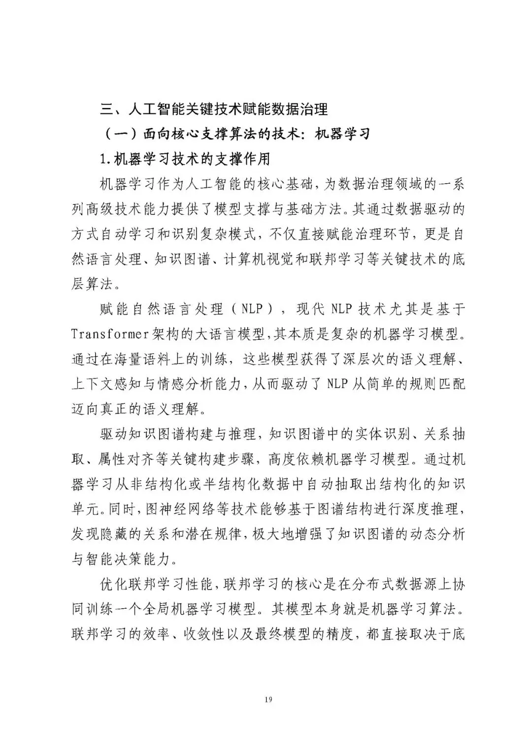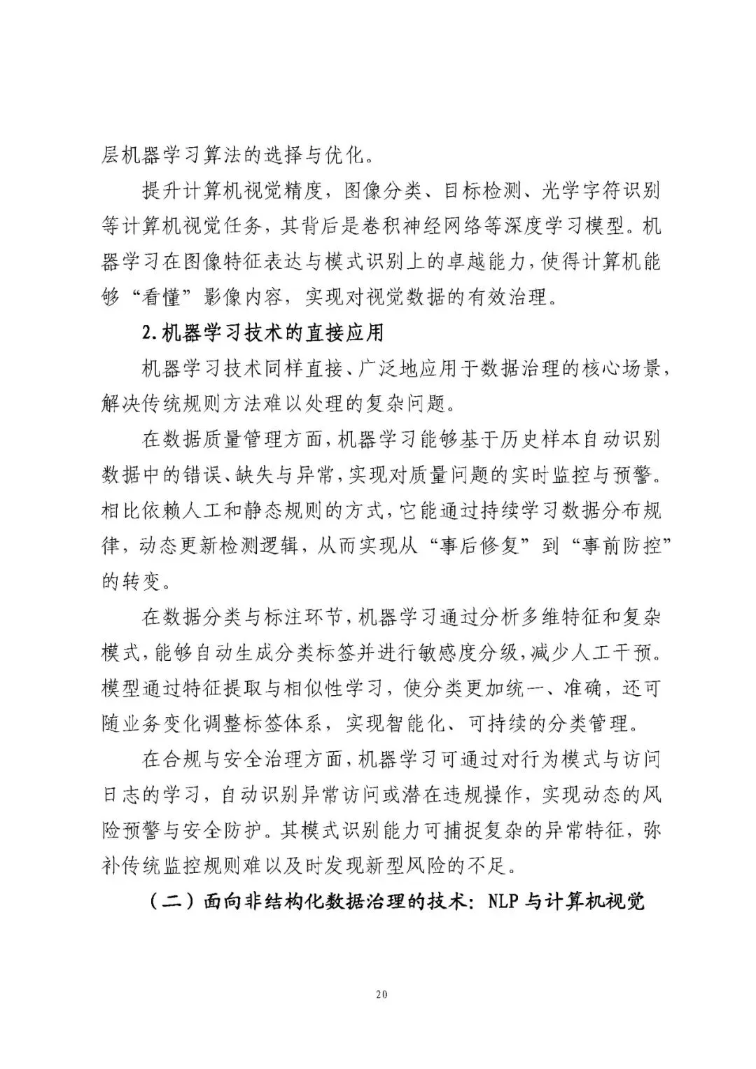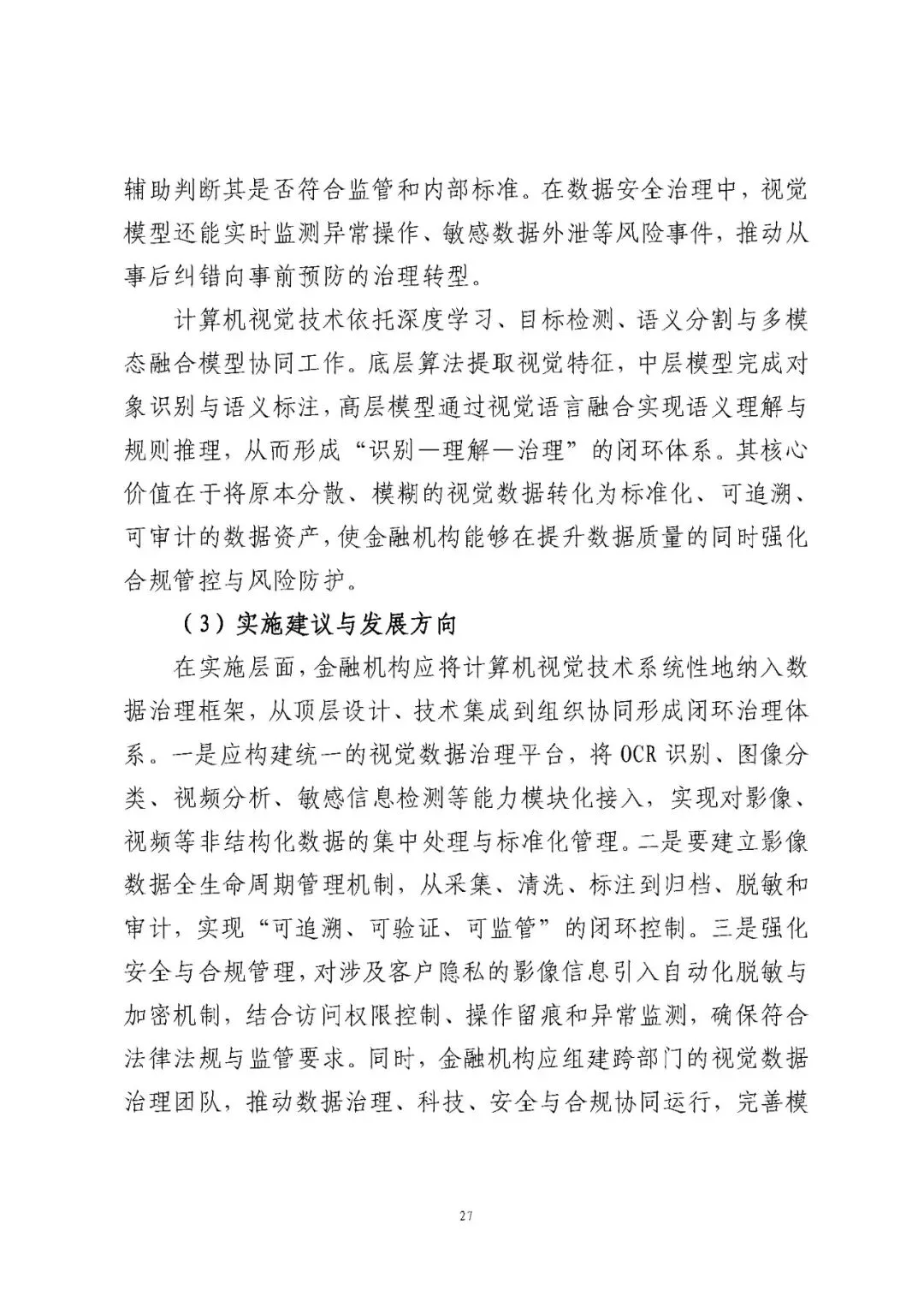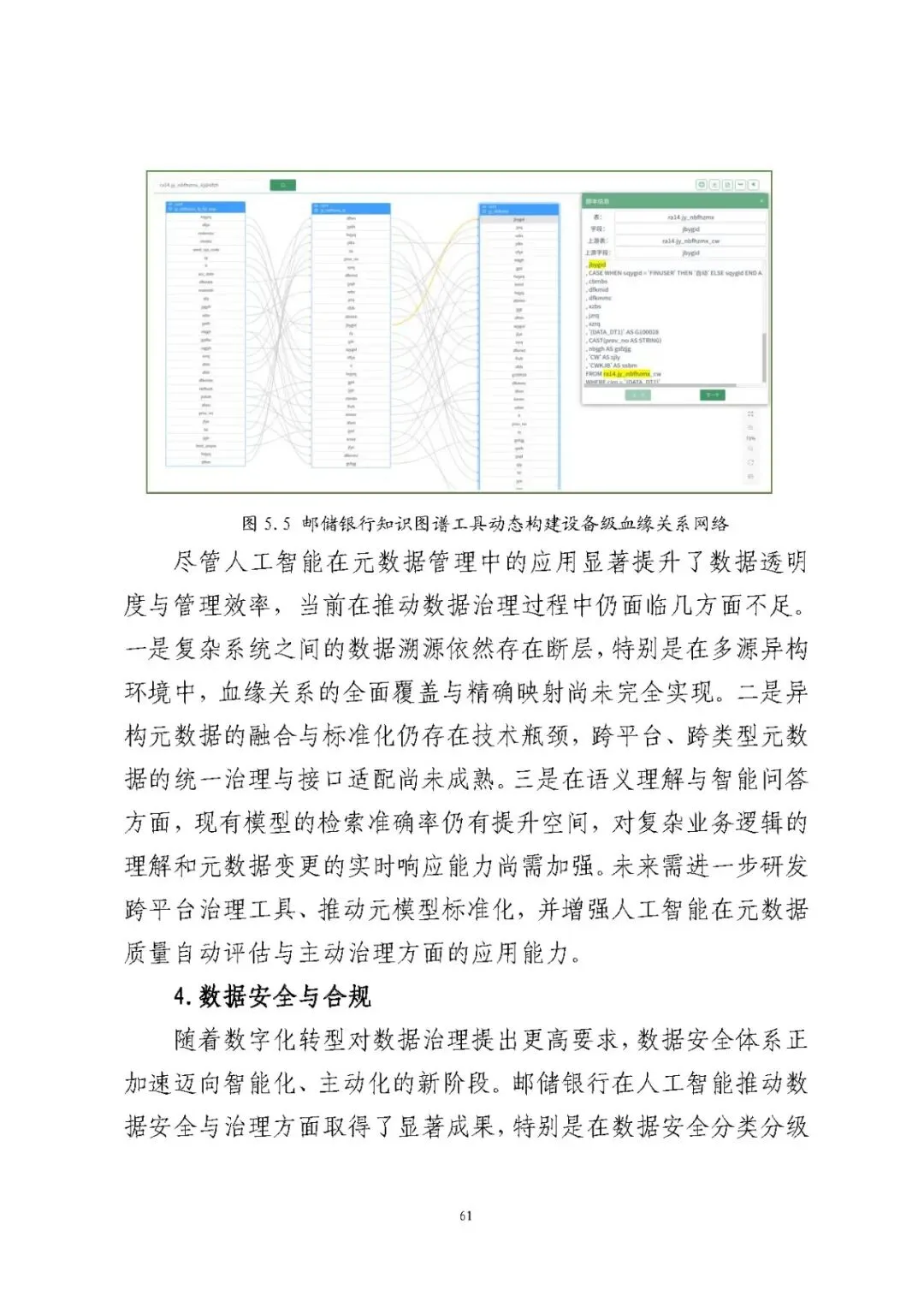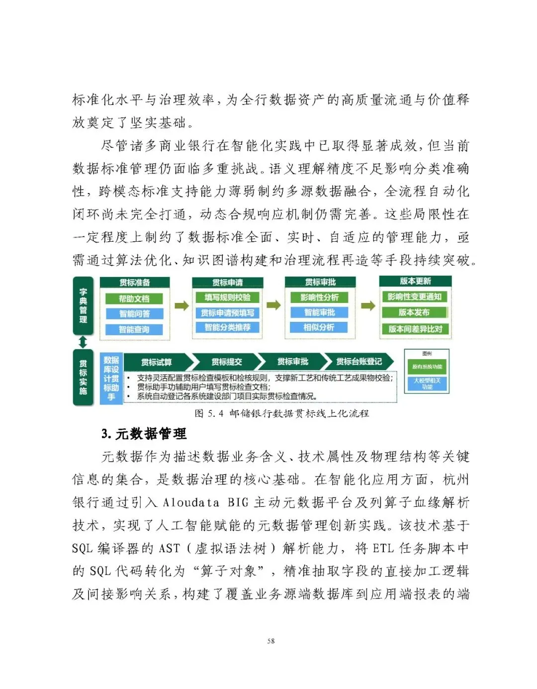 本报告提出了人工智能驱动数据治理的行业解决方案,聚焦数据质量提升、元数据管理、数据标准落地及安全合规等环节,深入梳理了自然语言处理、知识图谱等关键技术的应用路径,通过多技术融合构建从智能感知到自动决策的治理闭环。报告创新设计了“AI筑基、深化赋能、价值跃升”的阶段性实施路径及覆盖数据治理各领域的应用场景框架,通过行业实践案例验证了在提升数据贯标效率、安全合规管理等方面的显著成效,为金融机构提供了清晰可行、分步落地的行动指南,以及分层级、差异化的智能化转型路径参考。
