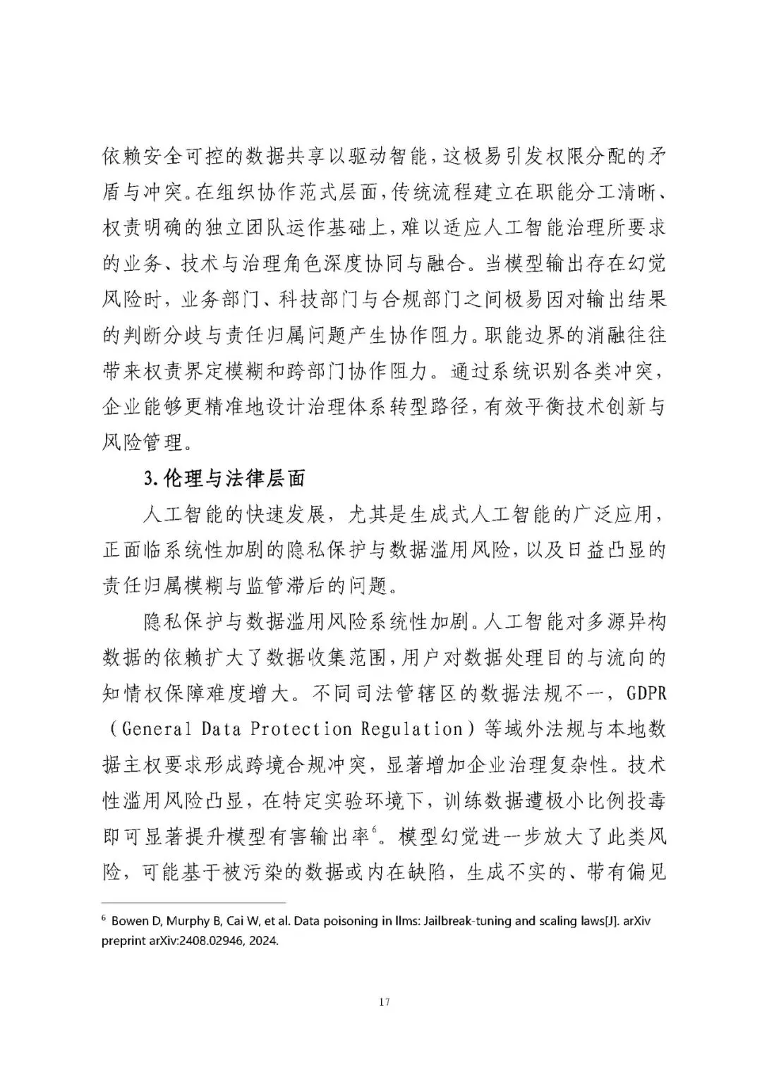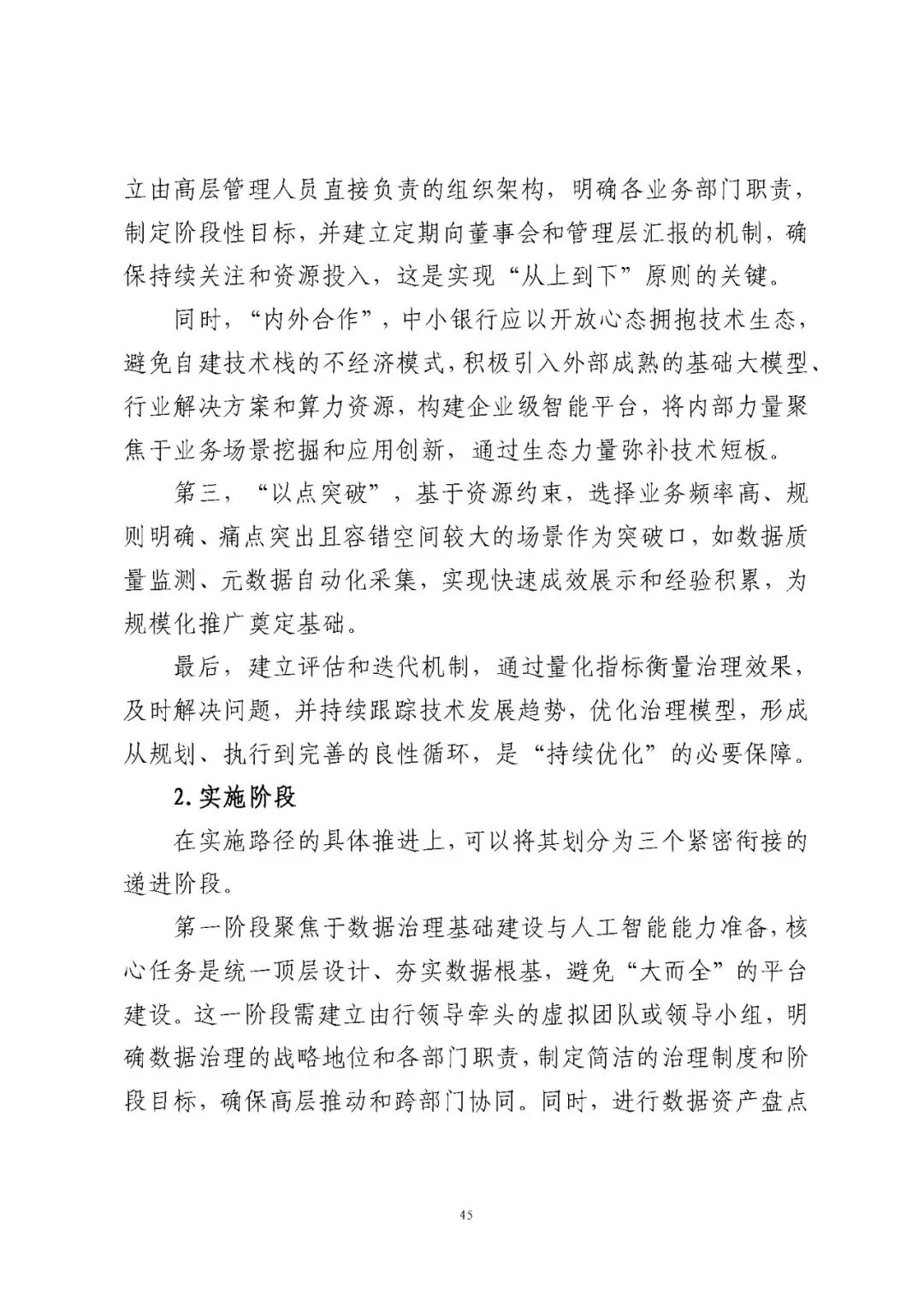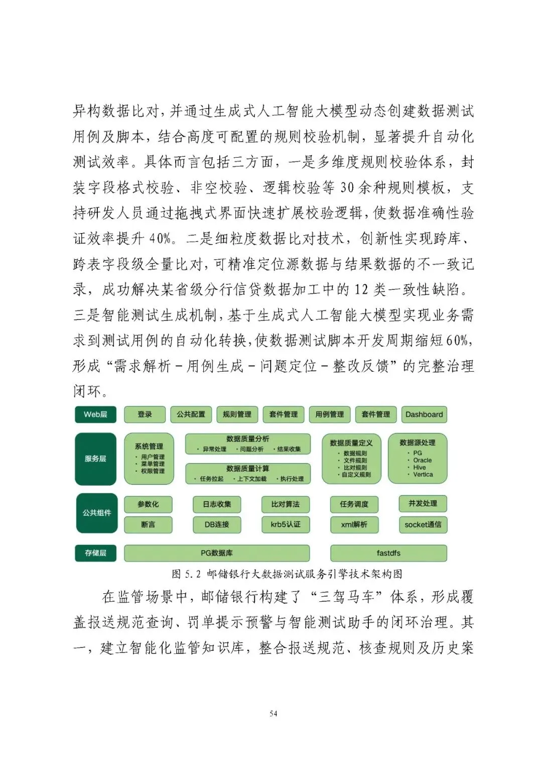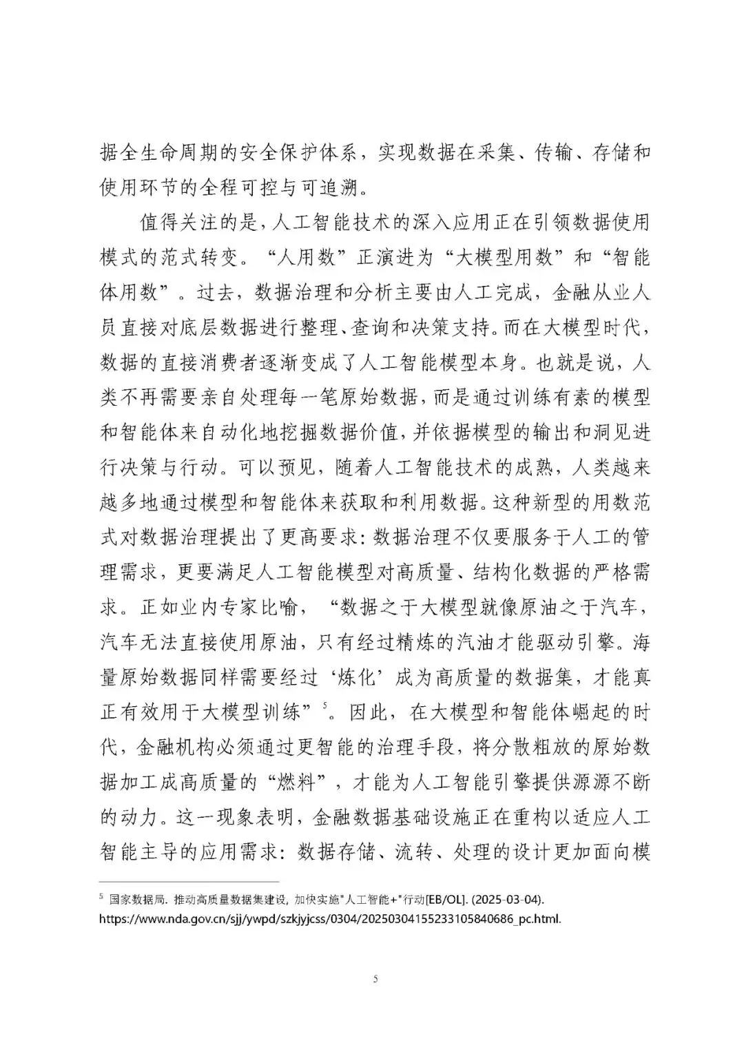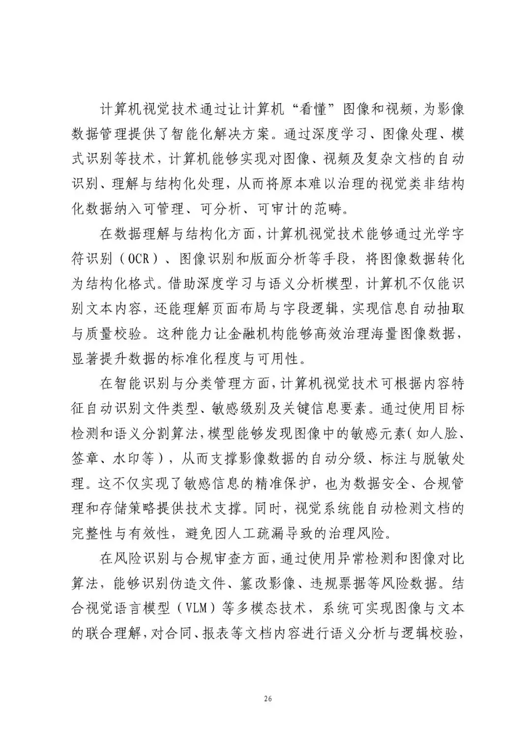 本报告提出了人工智能驱动数据治理的行业解决方案,聚焦数据质量提升、元数据管理、数据标准落地及安全合规等环节,深入梳理了自然语言处理、知识图谱等关键技术的应用路径,通过多技术融合构建从智能感知到自动决策的治理闭环。报告创新设计了“AI筑基、深化赋能、价值跃升”的阶段性实施路径及覆盖数据治理各领域的应用场景框架,通过行业实践案例验证了在提升数据贯标效率、安全合规管理等方面的显著成效,为金融机构提供了清晰可行、分步落地的行动指南,以及分层级、差异化的智能化转型路径参考。