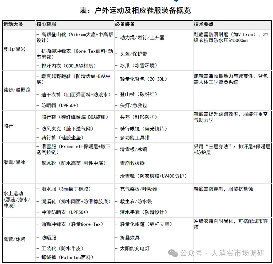 1、户外鞋服行业符合新消费趋势,从专业圈层到大众生活不断扩圈