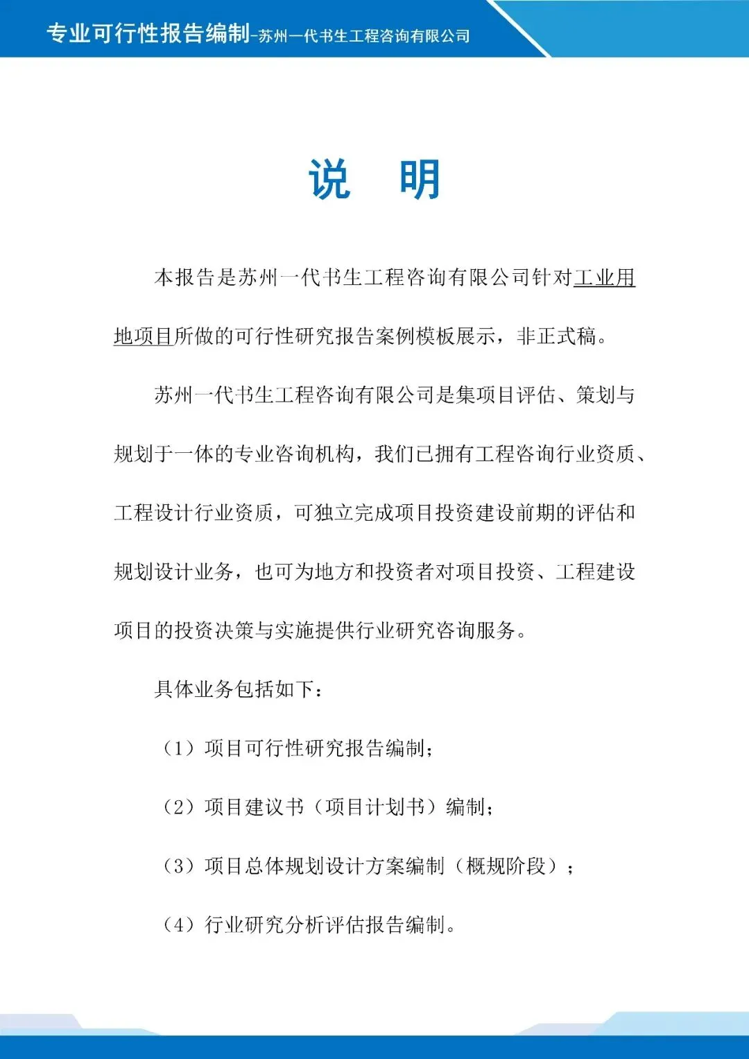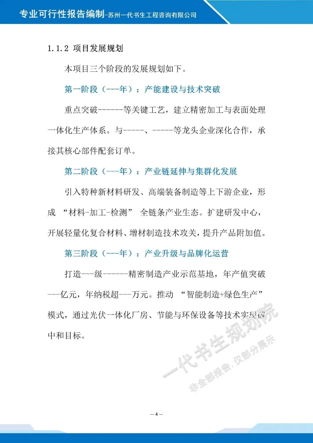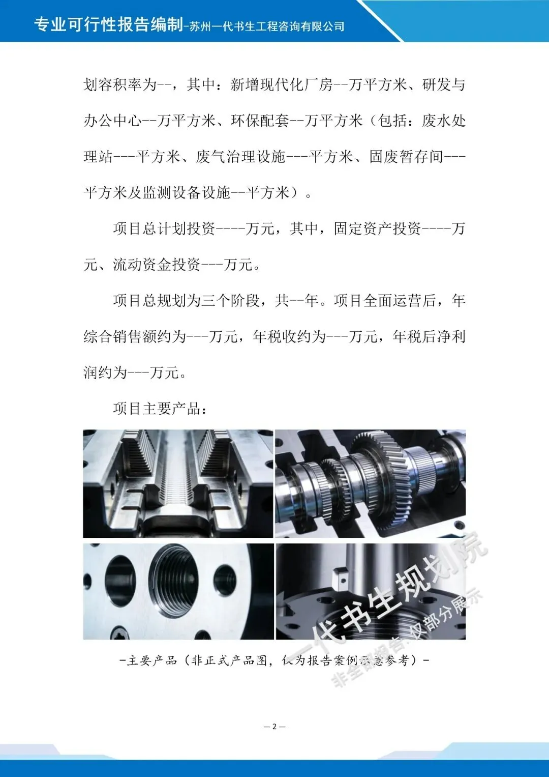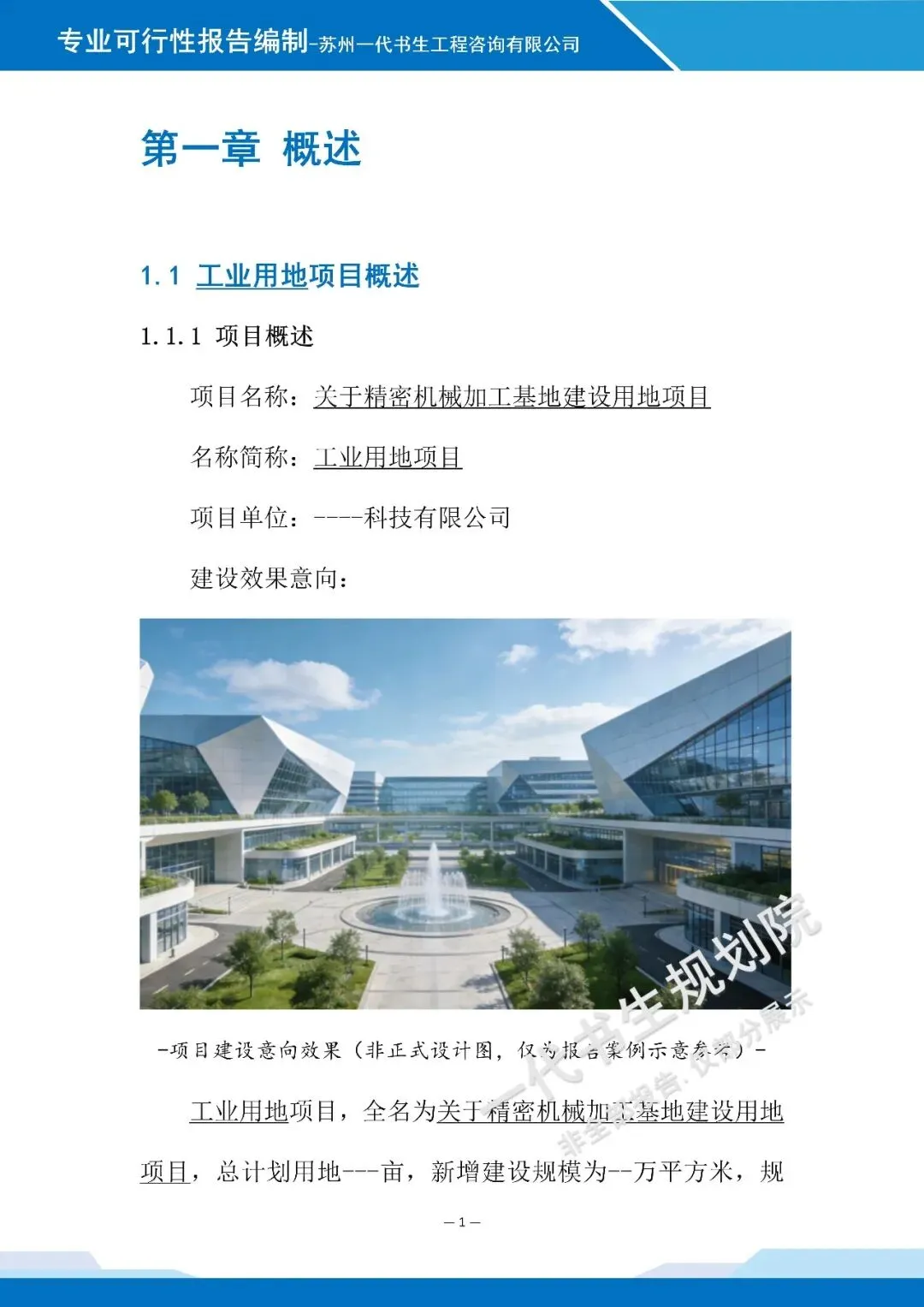 【三】项目可行性报告说明在编制《精密机械加工基地建设用地申请项目可行性报告》时,苏州一代书生工程咨询有限公司的可研报告编制团队,紧扣精密机械加工产业发展核心,聚焦建设用地适配性与项目可行性,突出专业性和严谨性,核心要点如下。第一:项目背景与定位,结合行业发展趋势,明确项目建设的政策导向、市场需求,界定项目核心加工领域与发展定位,明确建设总体目标。第二:建设条件分析,重点阐述建设用地的区位合理性、交通通达性、基础设施配套完善度,以及区域产业基础对项目的支撑能力。第三:核心建设内容,简要说明基地功能分区、加工业态布局及配套设施规划,体现集约化、规范化建设思路。第四:市场分析与运营模式,分析目标客群需求特征,明确项目运营思路、盈利模式,突出技术与服务的差异化优势。第五:风险分析与应对,梳理建设用地、项目建设及运营中的潜在风险,提出针对性防控措施;简要说明项目社会效益与产业带动作用,佐证项目建设的可行性与必要性。以下是《精密机械加工基地建设用地申请项目可行性报告》的案例展示,该项目可行性报告编制公司为苏州一代书生工程咨询有限公司。项目可行性研究报告编制、项目用地规划设计方案出具,请联系:17312436919。产业规划咨询、概念规划设计