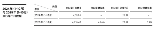 1、2025年1-10月,我国自行车出口量达 4,218.43万辆,同比增长 4.06%;出口额 22.52亿美元,同比增长 0.9%,呈现“量增价稳”特征。