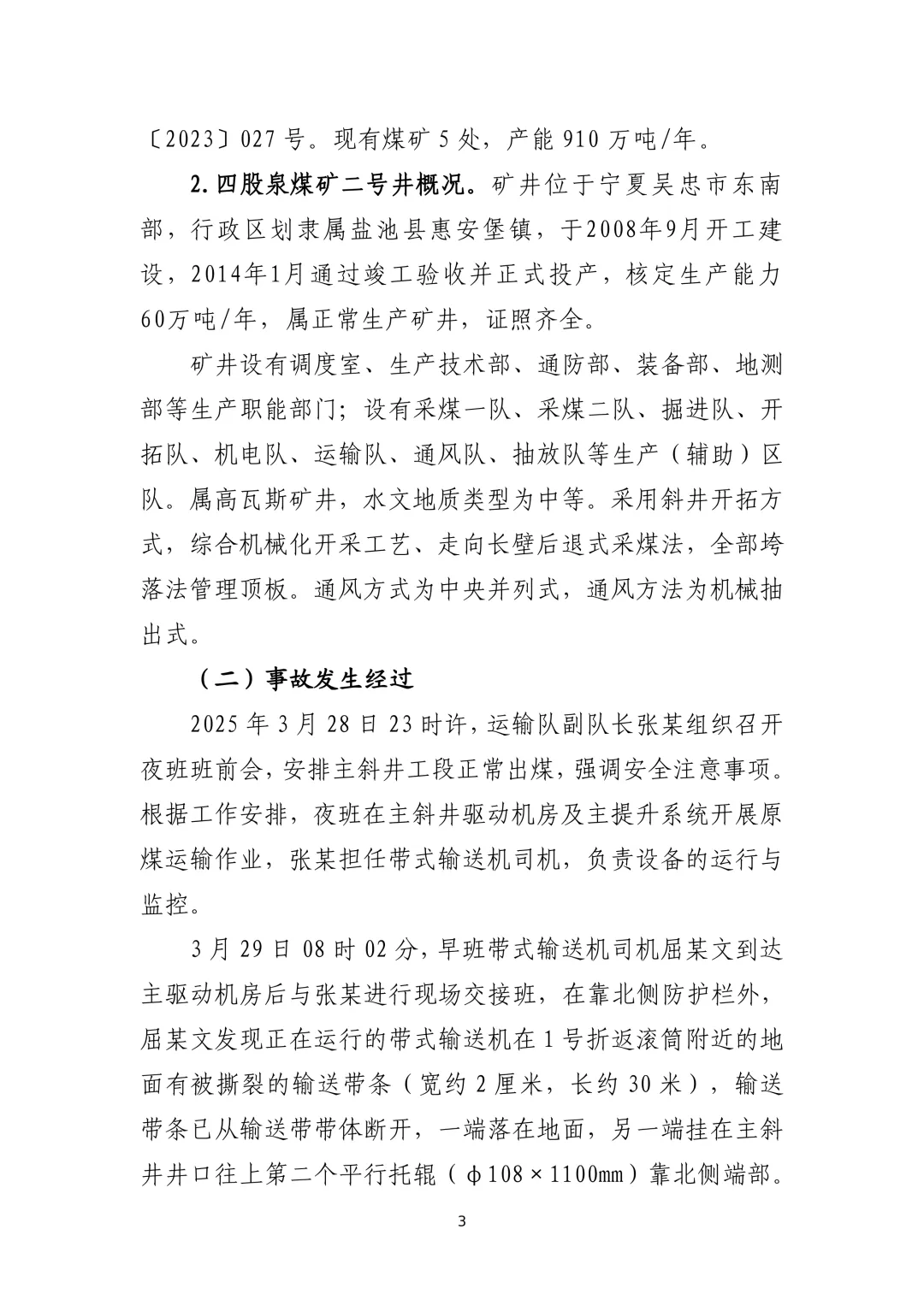 四股泉煤矿“3·29”一般运输事故调查报告