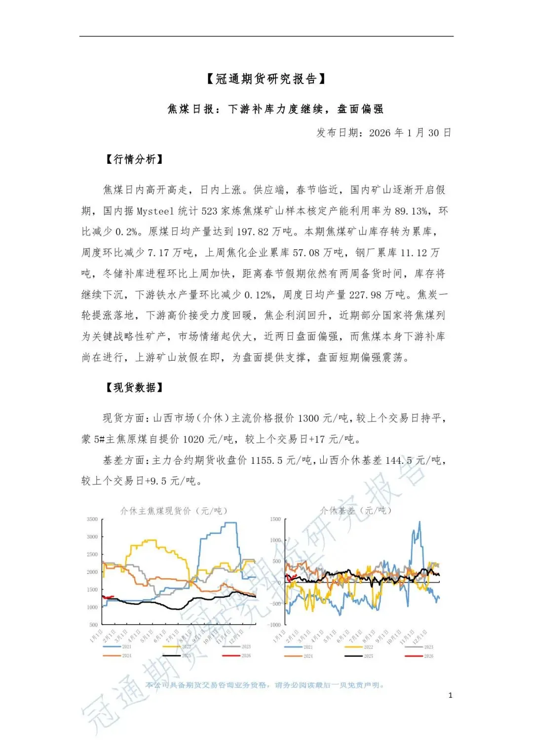 冠通期货研究报告--焦煤日评报:下游补库力度继续,盘面偏强