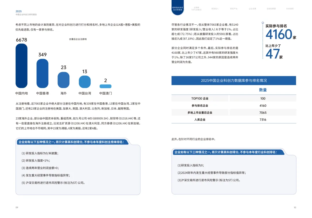 科创意识提升:披露研发投入的企业达 5915 家,占比 83.72%;披露研发人员的企业5309 家,占比 75.15%,透明度持续提升。 转型趋势明确:中国企业正从成本领先转向技术领先,从技术追赶迈向原始创新,AI、生物医药等领域成为科创核心赛道。
