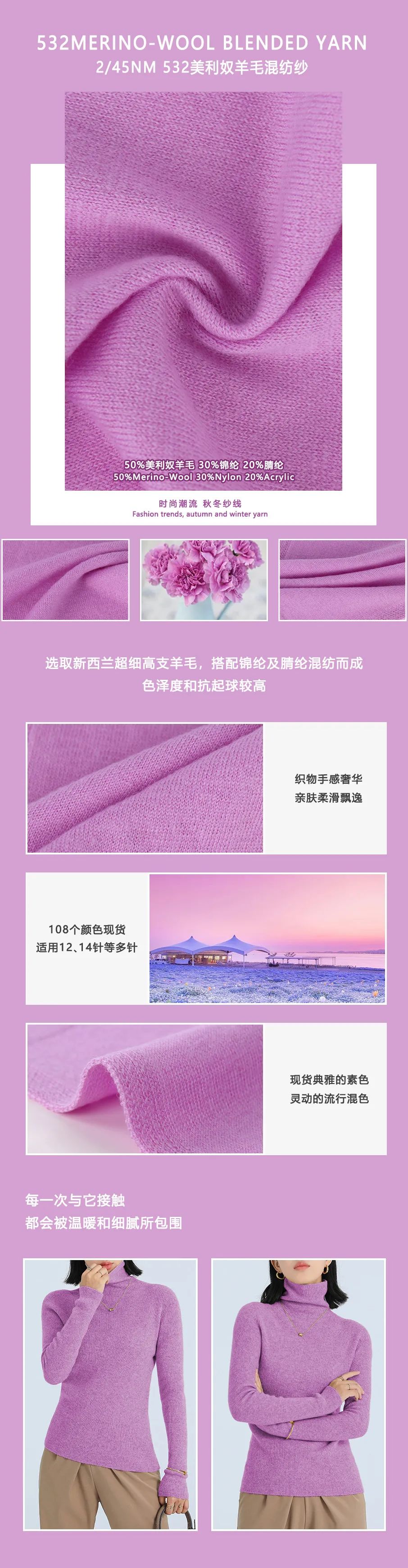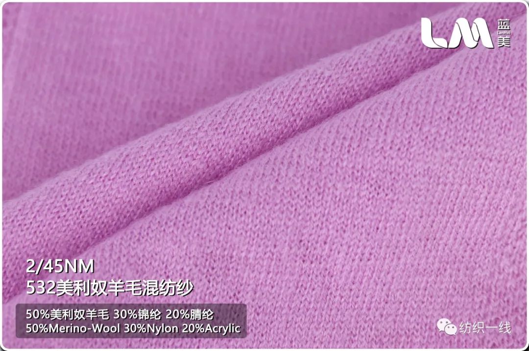 选用新西兰超细高支羊毛,搭配尼龙及抗起球腈纶,色泽度和抗起球均3.5左右,织成物手感奢华,亲肤柔滑飘逸悬垂,既有现货典雅的素色、又有灵动的混色,流行又经典,是传统五五毛的有内涵的价值提升,一经推出即受品牌商的热烈欢迎!