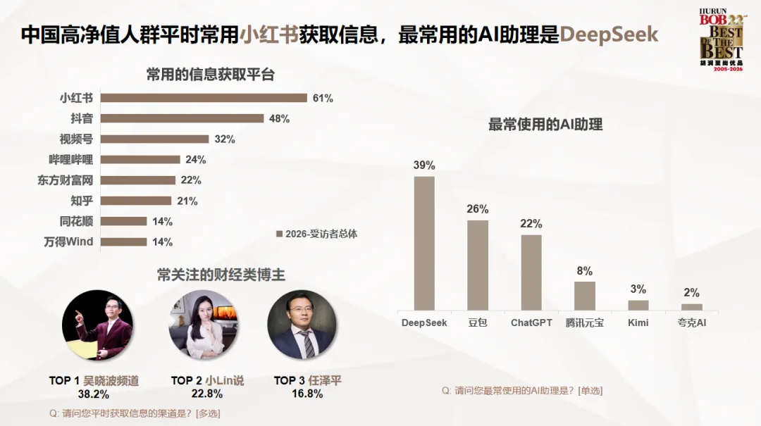 受访高净值人群最常用的AI助理是DeepSeek和豆包。
