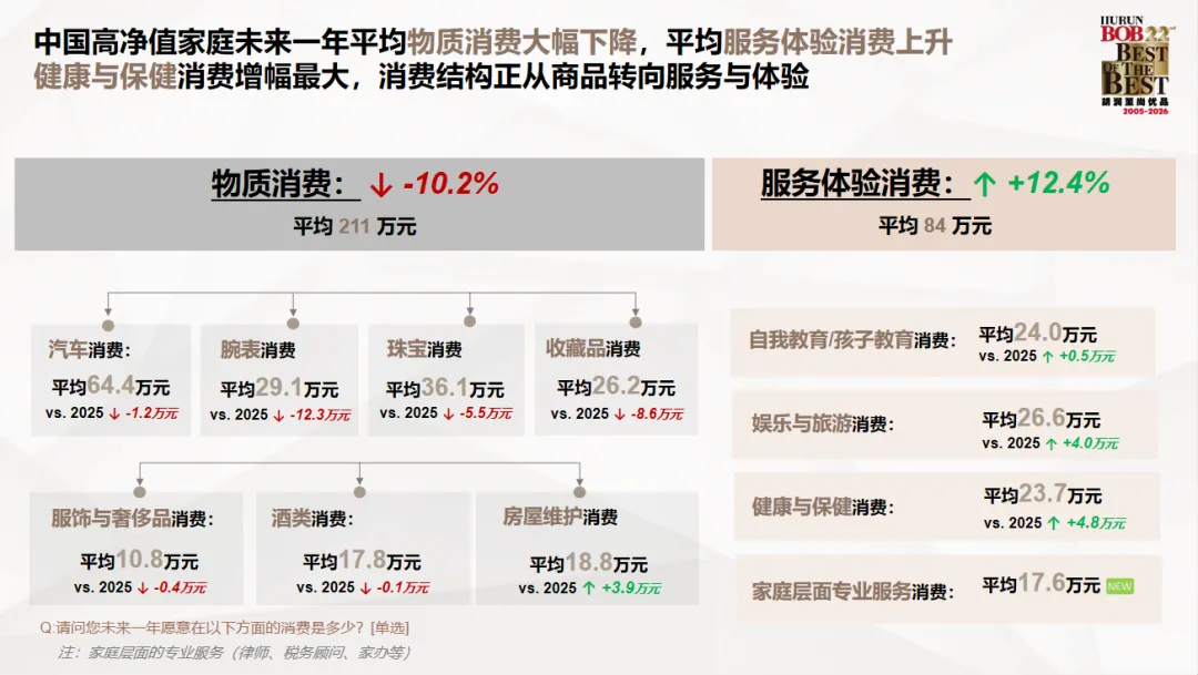 在对未来一年的规划中,高净值家庭的年均物质消费预计将减少24.2万元。