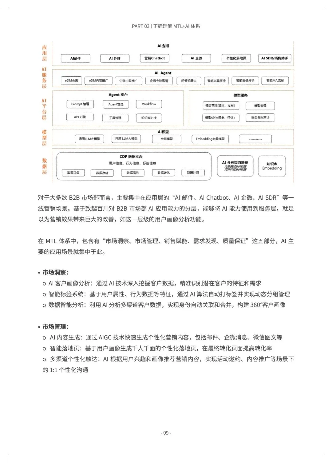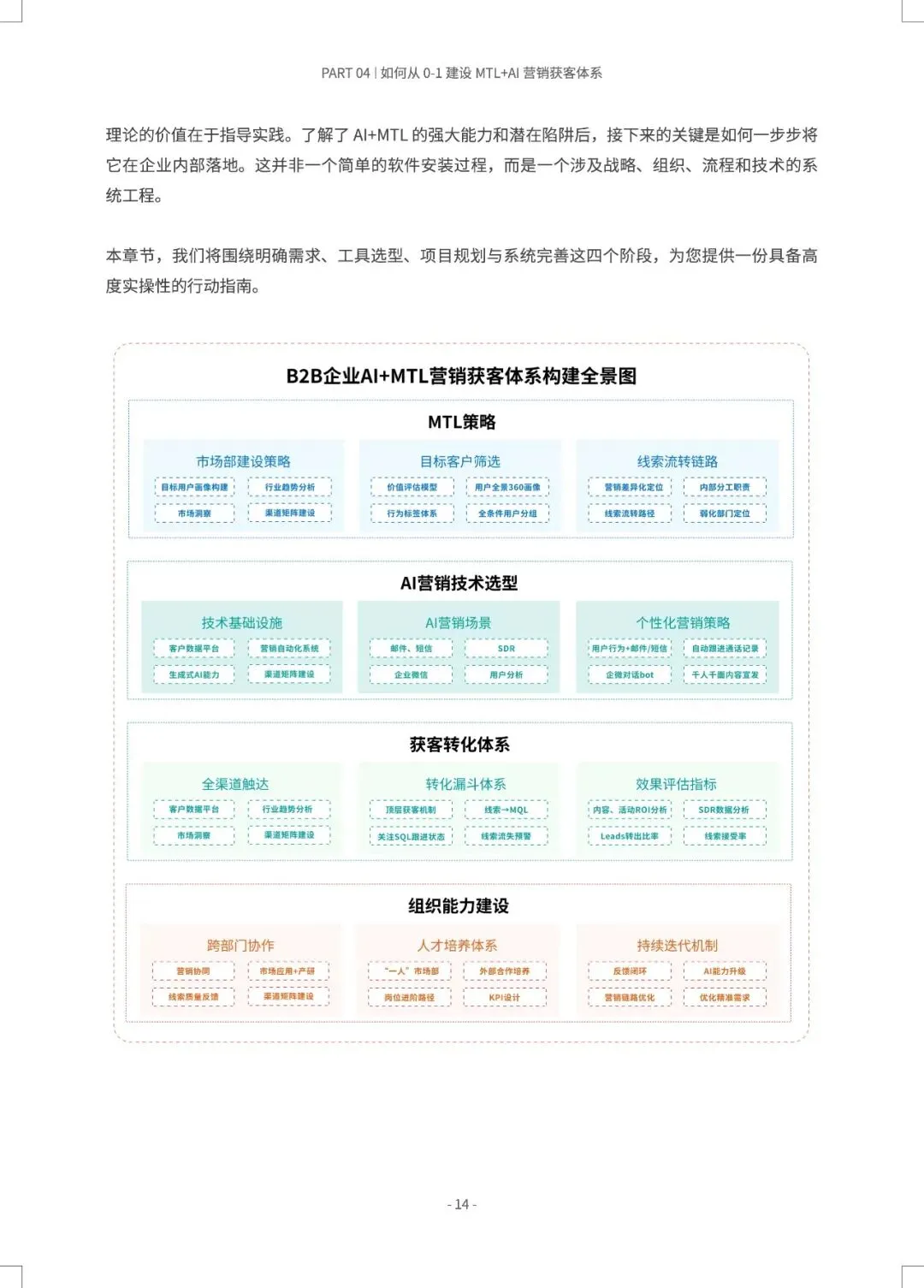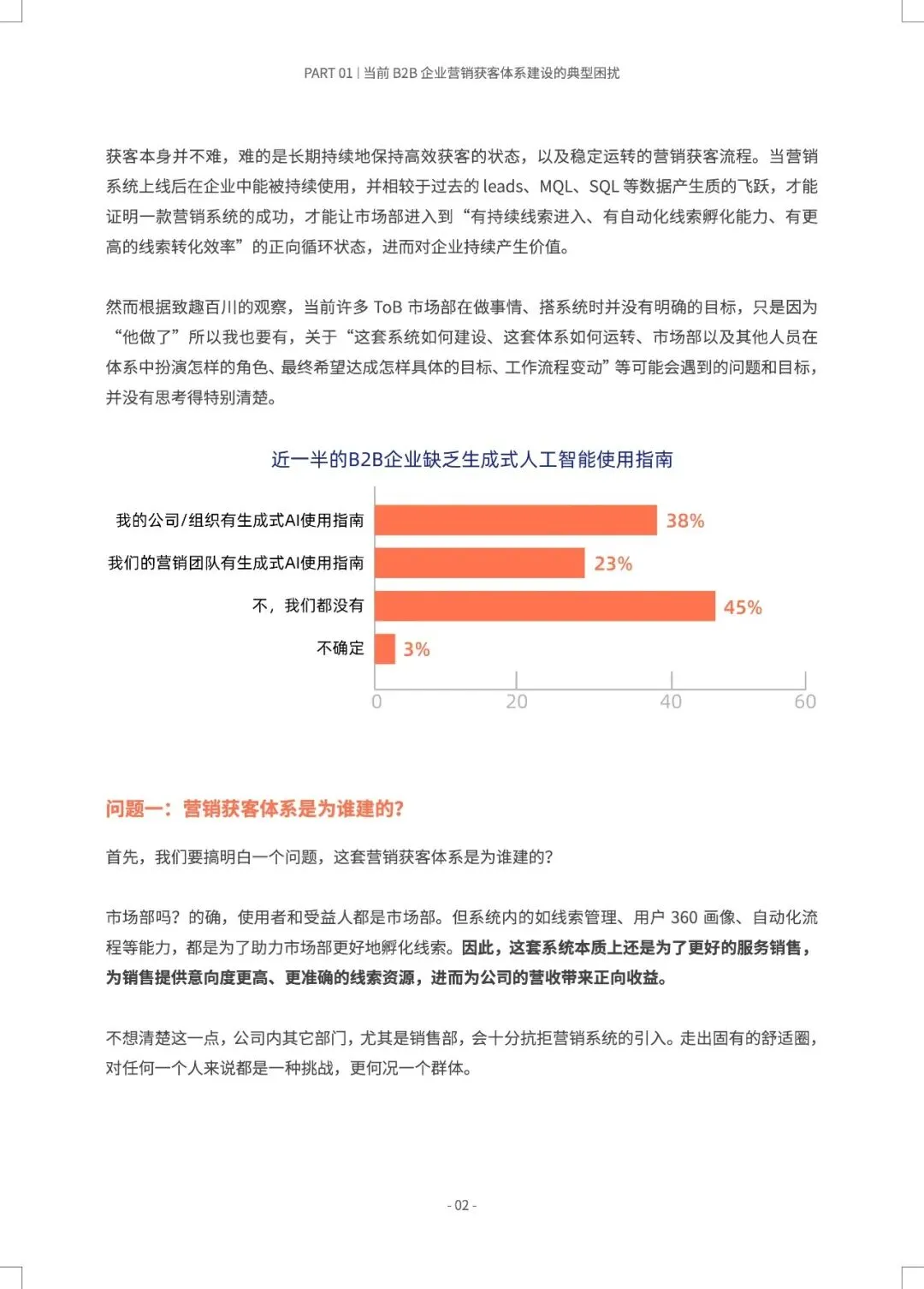 B2B营销正从“经验驱动”转向“AI预测驱动”,MTL体系与AI的深度融合,旨在打造一台可预测、可优化的“营收引擎”。 报告指出,近半数B2B企业缺乏AI使用指南,而成功部署AI+MTL体系的企业已实现显著增效:AI邮件打开率提升8.75倍,AI SDR使人工操作时间减少80%以上,线索转化率提升30%。市场部与销售部的数据孤岛、组织惯性是最大落地障碍。