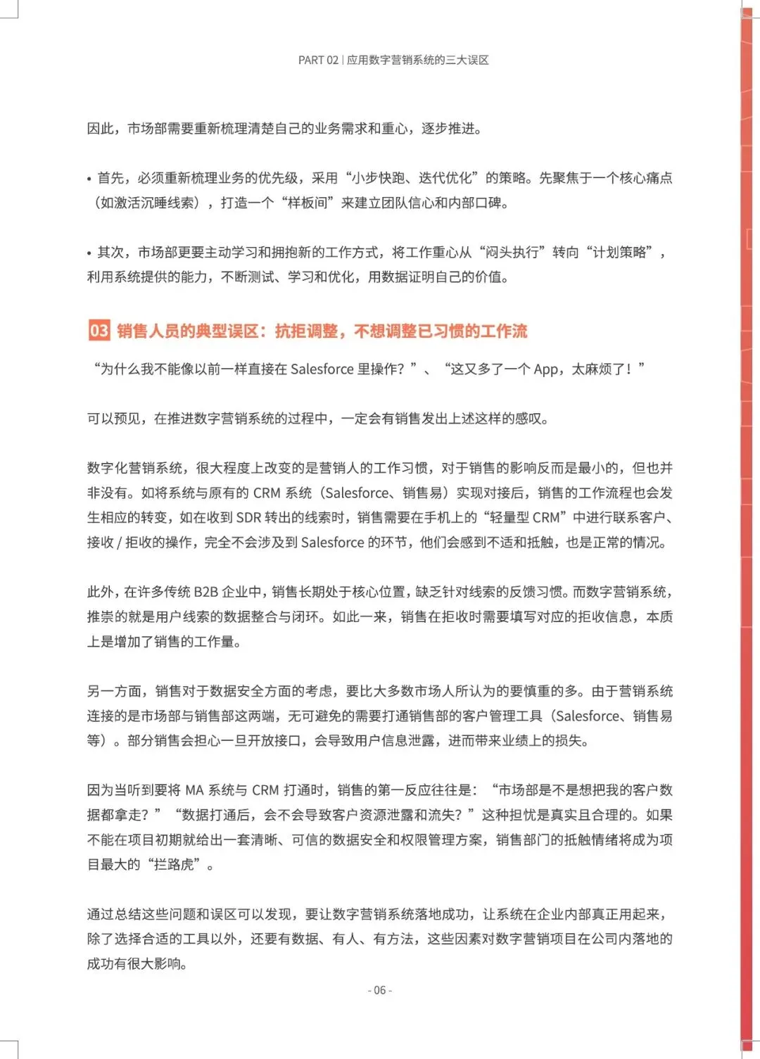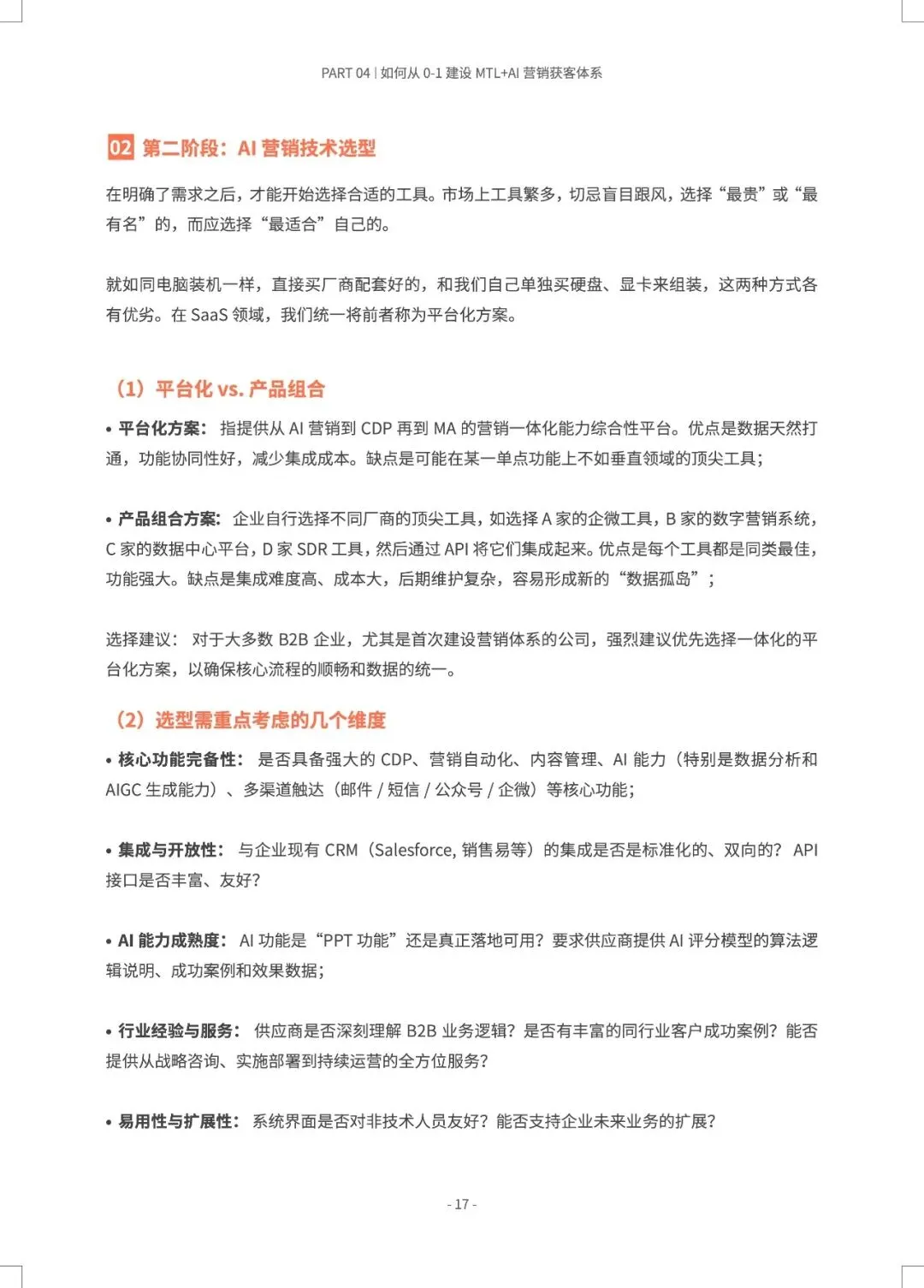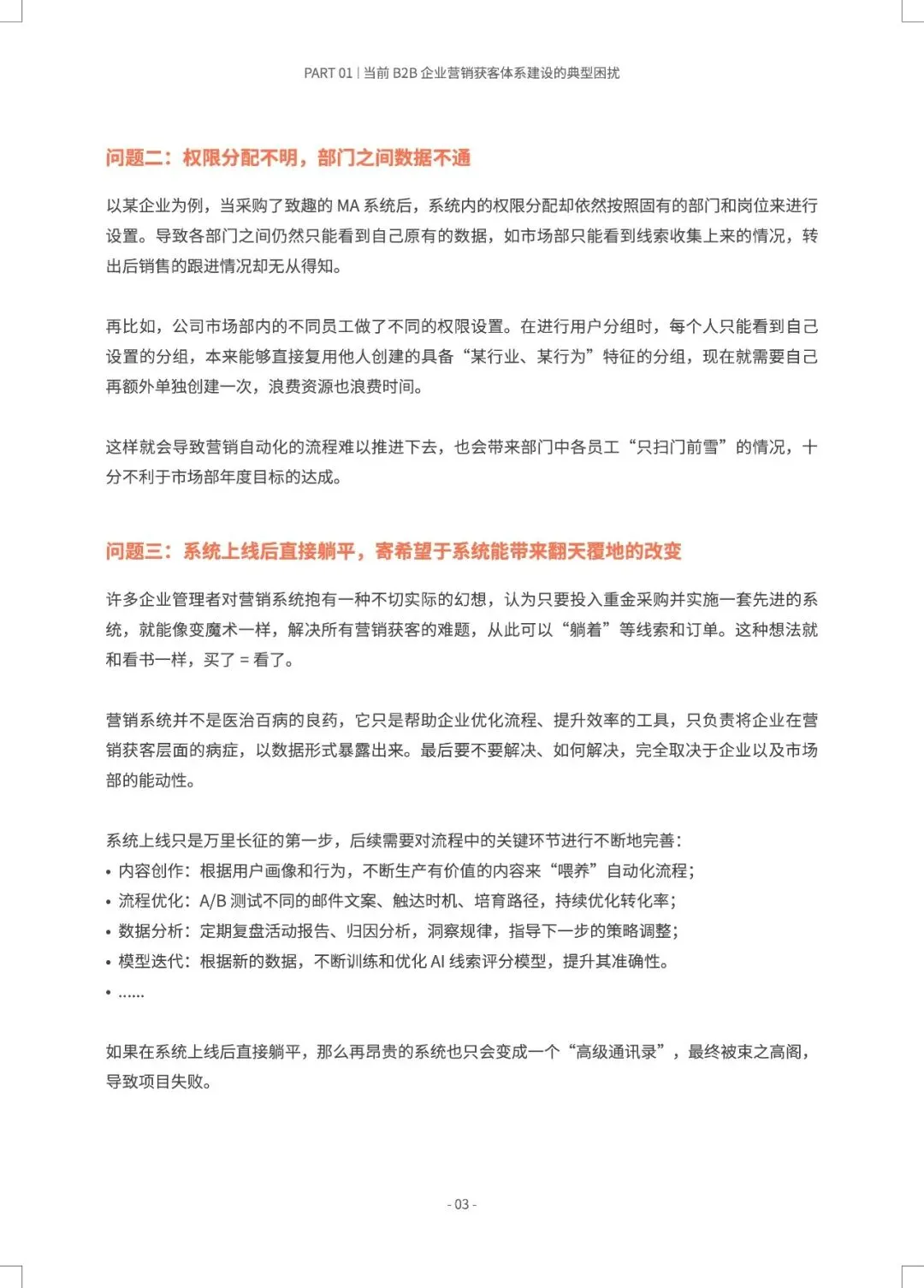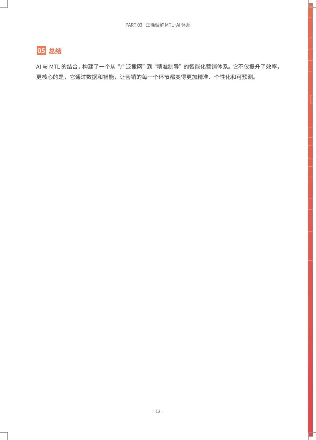 B2B营销正从“经验驱动”转向“AI预测驱动”,MTL体系与AI的深度融合,旨在打造一台可预测、可优化的“营收引擎”。 报告指出,近半数B2B企业缺乏AI使用指南,而成功部署AI+MTL体系的企业已实现显著增效:AI邮件打开率提升8.75倍,AI SDR使人工操作时间减少80%以上,线索转化率提升30%。市场部与销售部的数据孤岛、组织惯性是最大落地障碍。