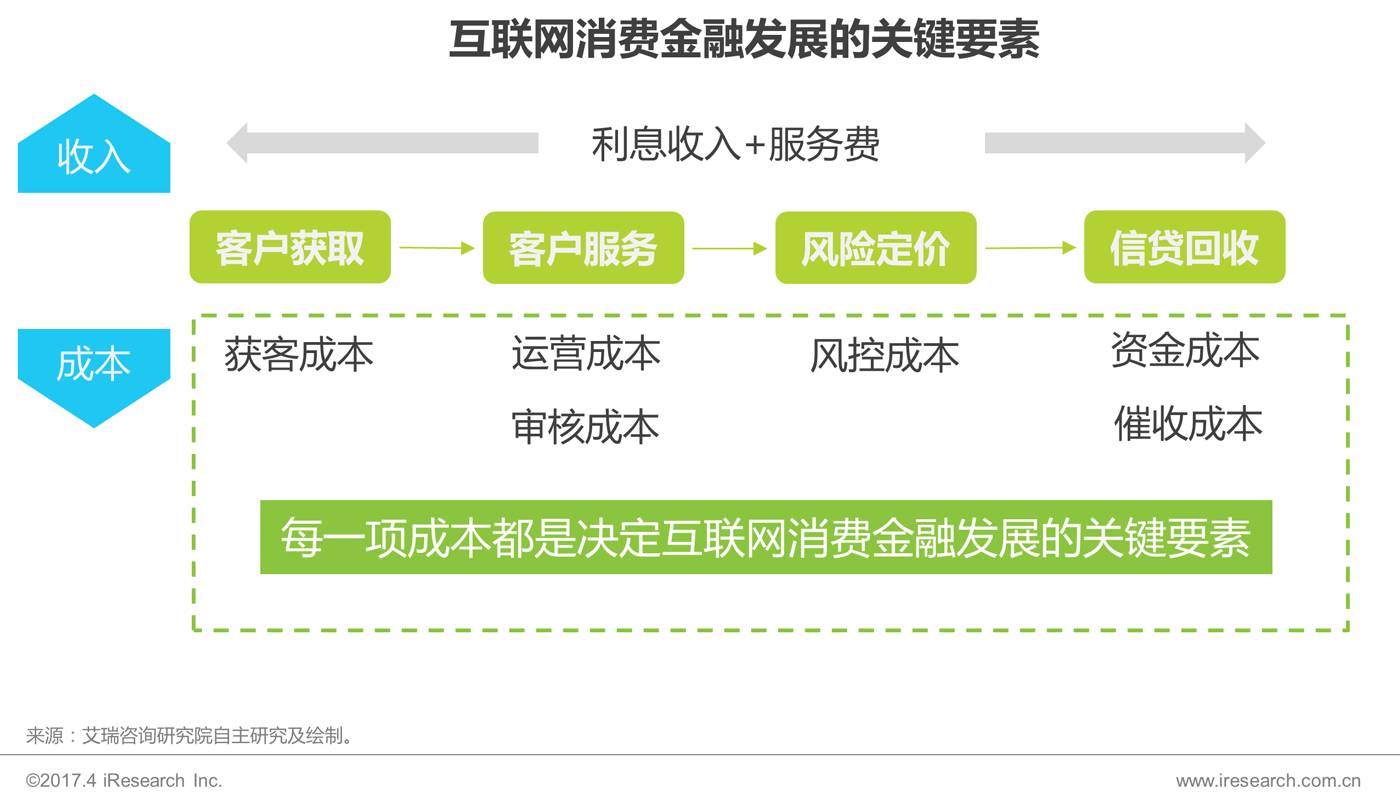互联网消费金融的存在并不必然意味着能产生持久的利润,甚至于恰恰相反——面临着重重考验。利润来源于成本与收入的合理匹配关系。收入端,消费金融的收入来自于客户借款利息与服务费,成本则分布于整个业务流程中。