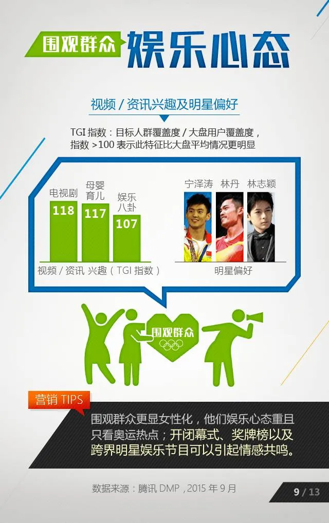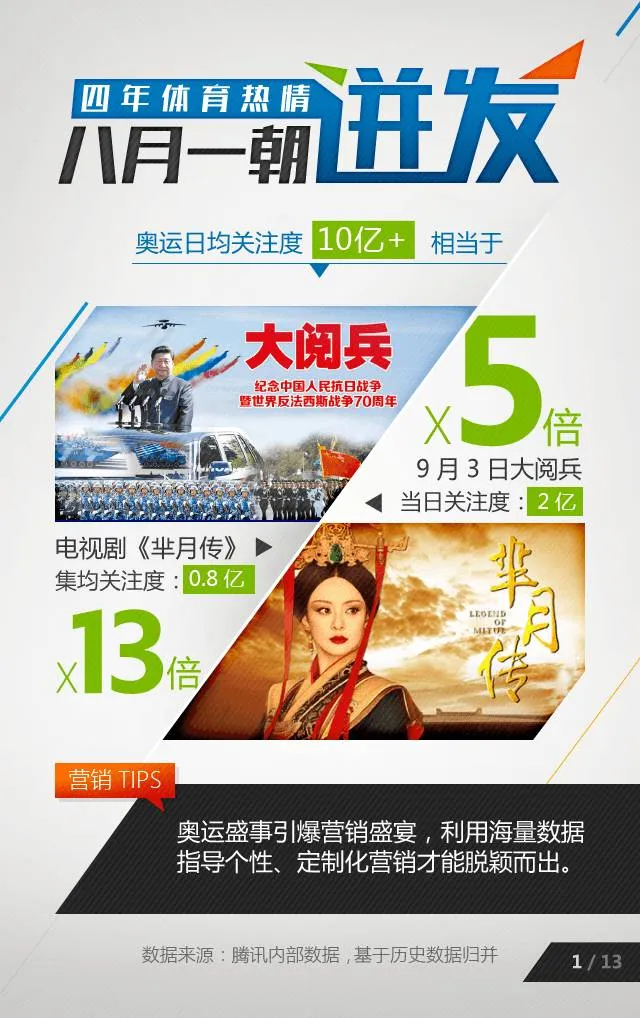 腾讯汇聚数据力量,梳理观赛趋势、预测里约看点,从内容植入等多角度为您呈现最完整的奥运营销策略,为品牌运营提供更多指导和参考。
