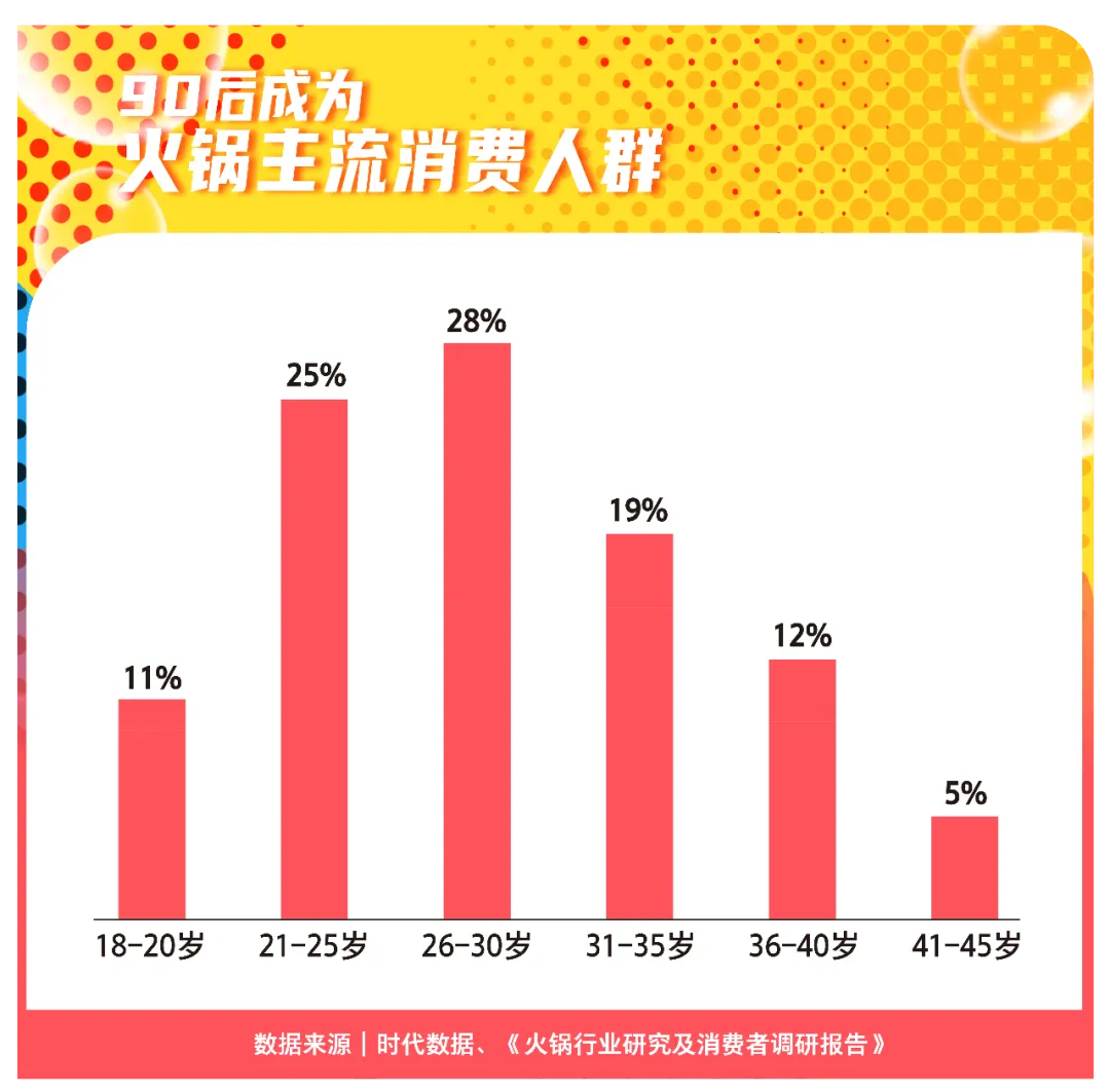 随着年轻消费群体的加入,多元化的口味也在兴起。根据消费者调研数据,90后成为火锅主流消费人群,占整体消费者数量53.1%。