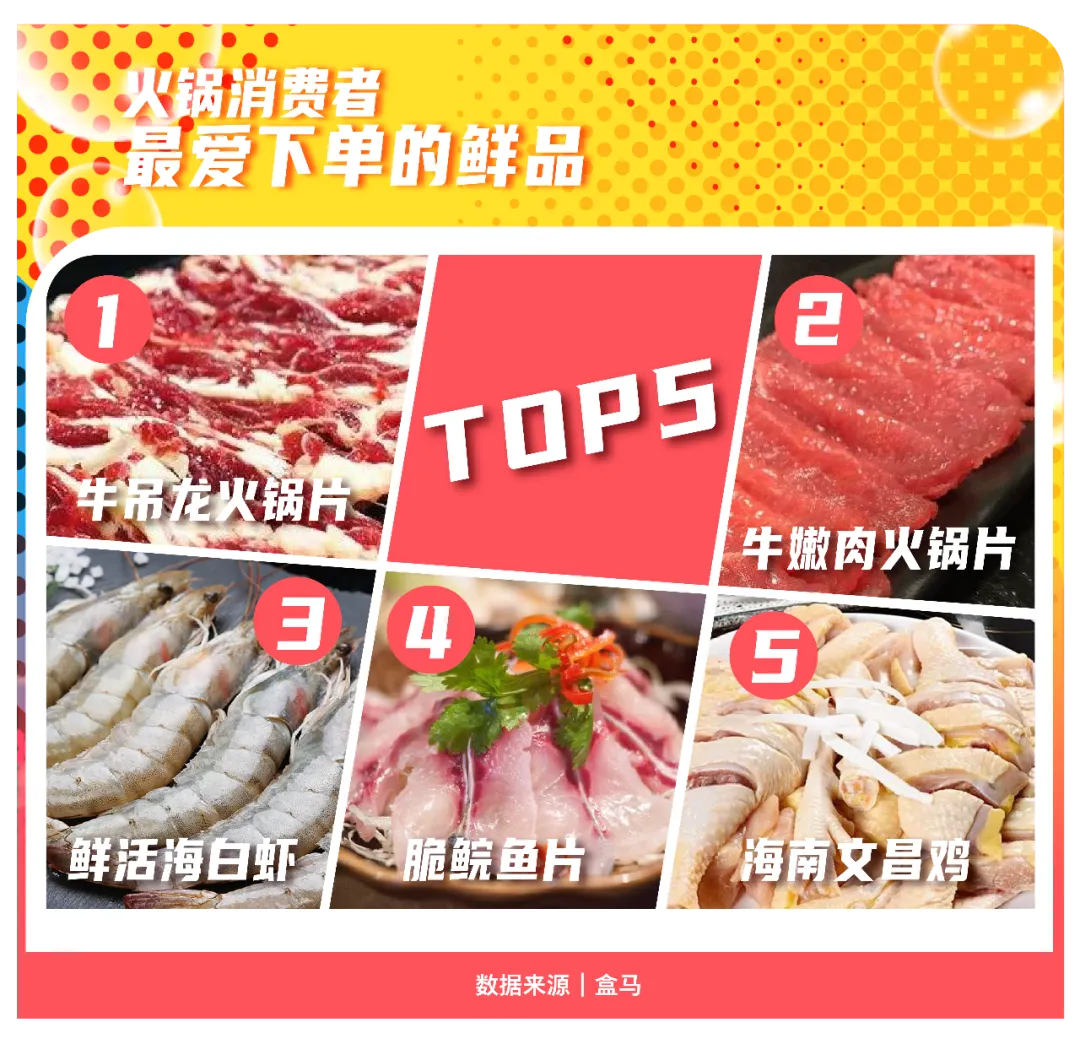 同时,盒马数据显示,以肉类涮品为例,2022年火锅季以来,鲜品较去年、前年同期分别增长44%、60%,远超冻品的增幅(同比增长13%、35%)。