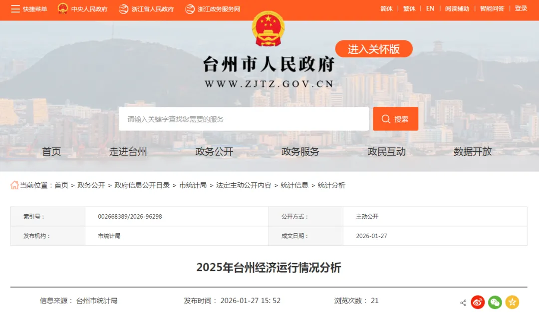 来源:台州市人民政府网-台州市统计局