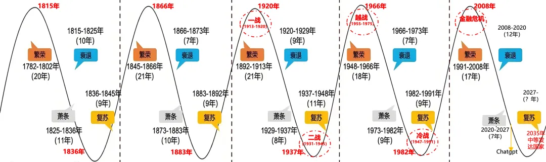 康德拉季耶夫周期(K-Wave)描述了由技术革命驱动的40-60年长周期。2026年正处于第五次长波(信息技术时代)的“冬季”尾声与第六次长波的“春季”萌芽交替期。