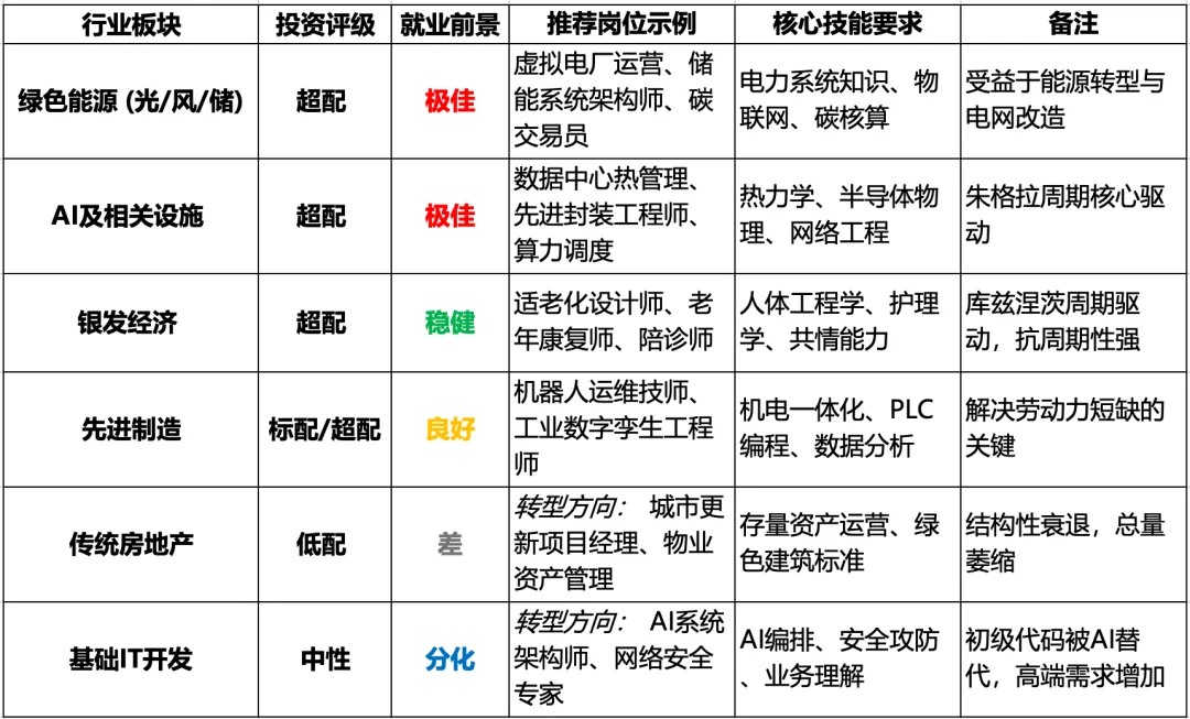 新周期的驱动力(人口结构): 随着中国60岁以上人口占比超过22%,新的库兹涅茨周期将围绕“适老化改造”和“银发基础设施”展开 。建筑业的余温将主要体现在老旧小区改造、无障碍设施建设以及康养社区的开发上。从“建房子”到“服务人”,资本流向的改变决定了就业必须从硬工程转向软服务。