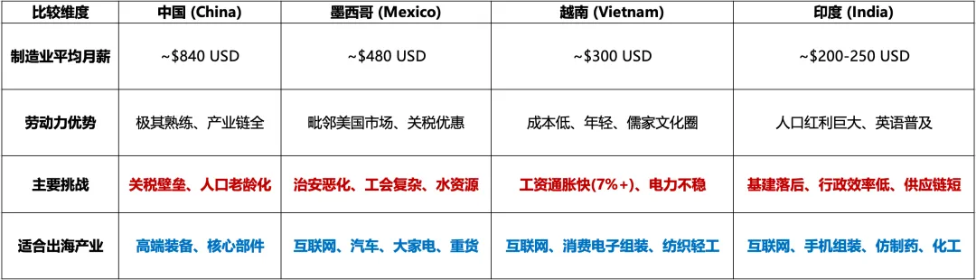 机会本质:国内的一名普通中层经理,在墨西哥蒙特雷或越南北宁可能成为独当一面的厂长或国家经理。 薪酬溢价:此时的出海通常伴随着艰苦补贴和高额奖金,综合收入往往是国内同岗位的1.5倍至2倍 。