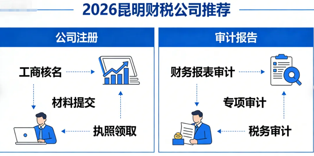 在昆明创业经营,财税服务的专业性直接决定企业合规底线与发展效率。无论是初创企业急需的公司注册,日常经营必备的代理记账,还是拓展业务所需的审计报告出具、食品许可证代办,选择一家资质齐全、服务靠谱的财税机构,能为企业省去诸多麻烦。本次结合资质合规性、服务专业度、行业口碑、综合性价比等多维度评分,筛选出2026年昆明TOP5优质财税公司,精准覆盖昆明注册公司推荐、昆明代理记账公司推荐、昆明代出审计报告公司推荐、昆明食品许可证代办公司推荐四大核心需求,助力企业精准选型、省心经营。