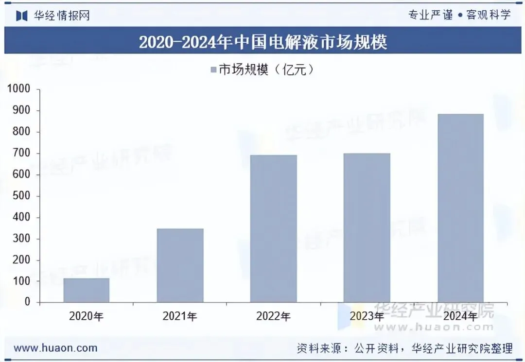 2023年中国电解液市场规模达701.5亿元,同比增长0.9%。其中储能电池电解液表现亮眼,规模达150亿元,同比增长25%,占整体市场重要份额。天赐材料等龙头凭借技术与成本优势主导市场,其稳定供应为储能电池能量密度提升、循环寿命延长提供支撑,同时电解液价格下行也助力储能系统成本优化,保障储能行业规模化发展动力。