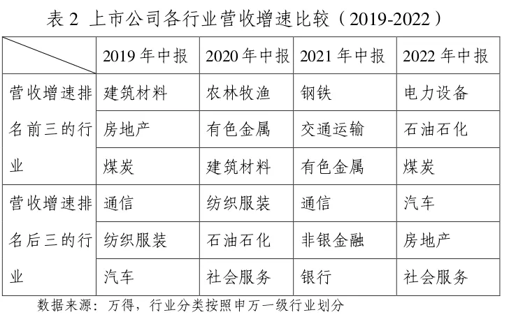 宏观经济研究不仅要关注总量,也要注重结构。宏观经济结构中最重要指标之一是行业结构,其反映不同行业在经济总量中的相对占比,以及对经济增长的贡献程度。通过分析对比近年来 A 股不同行业上市公司的营收增速,可以在微观层面映射出宏观经济结构和经济增长引擎的变动。从 2022